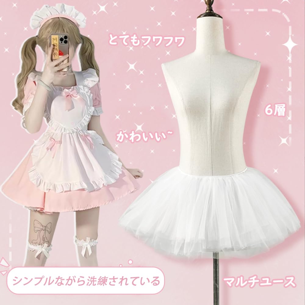かわいい:は、チュールとレースの組み合わせで、立体的なプリーツデザインで、シンプルなのに単調ではありません。コスプレやロリータが好きな人にぴったりです。ロリー群、メイド服、ドレスなどを組み合わせることができます。着るだけで、どんなスカートもふんわり、ふわふわになります。プリンセスドレスのパニエとして使用できるほか、単独で着用することもできる。