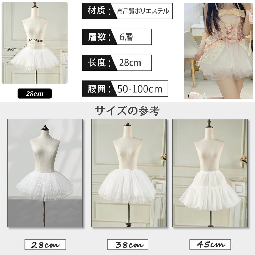 セット内容:インナースカート1セット,サイズ:約28cm(腰围可调节范围:50~100CM)、カラー:ホワイト。