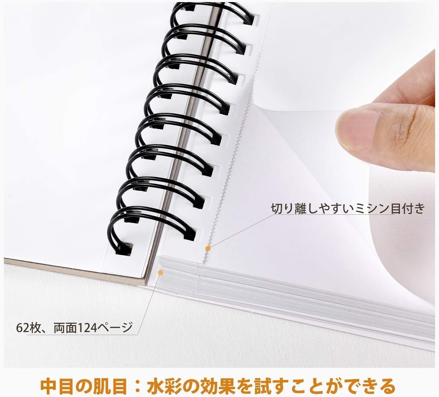 ️【ミシン目付き・使用便利】:ページによってマイクロミシン目が入っているので、力を入れることなく容易に切り離せます。絵画の練習用、イラストレーション、水彩画用紙、スケッチ、マンガ、製図、デザイン、アクリル絵の具などいろんな場合に適用。