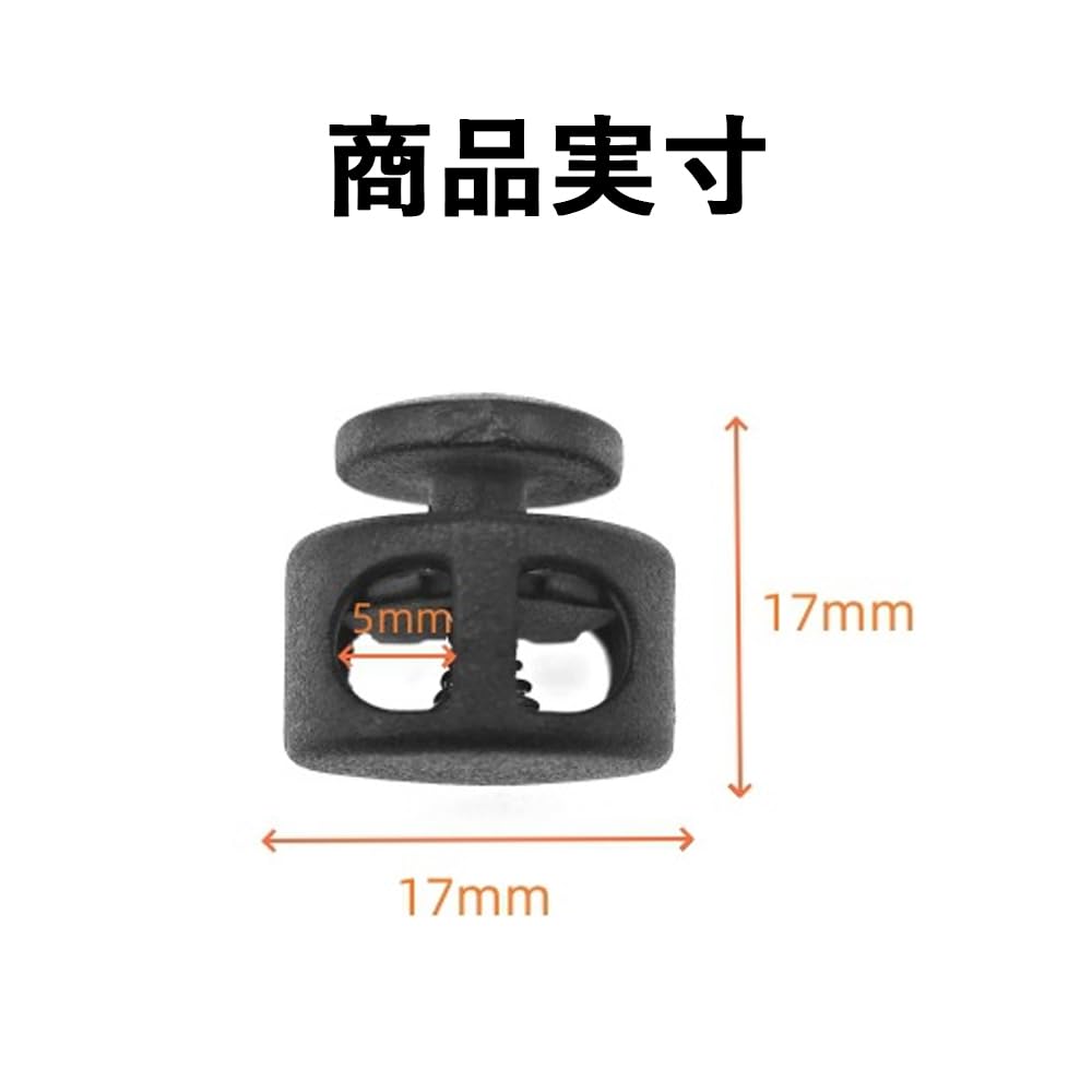 【高品質な素材と重量感】このコードストッパーは、高耐久性のプラスチック製で設計されています。軽量でありながら、非常に頑丈で壊れにくい特性を持っており、サイズは17mm*17mm、口径は5mmです。小さくても、その機能性には定評があります。他の製品との差別化を図るために、自信をもってお勧めできるアイテムです。