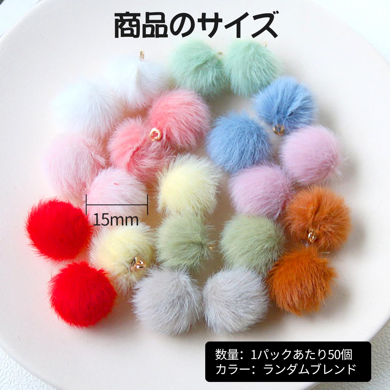 Liroyal ファーボール 混合色【50個セット】 カン付き 15mm ポンポン ペンダント チャーム ふわふわミンクファー アクセサリーパーツ DIY 手芸材料 ピアスパーツ ハンドメイド パーツ ボール ポンポン 手作り素材 クラフト用品