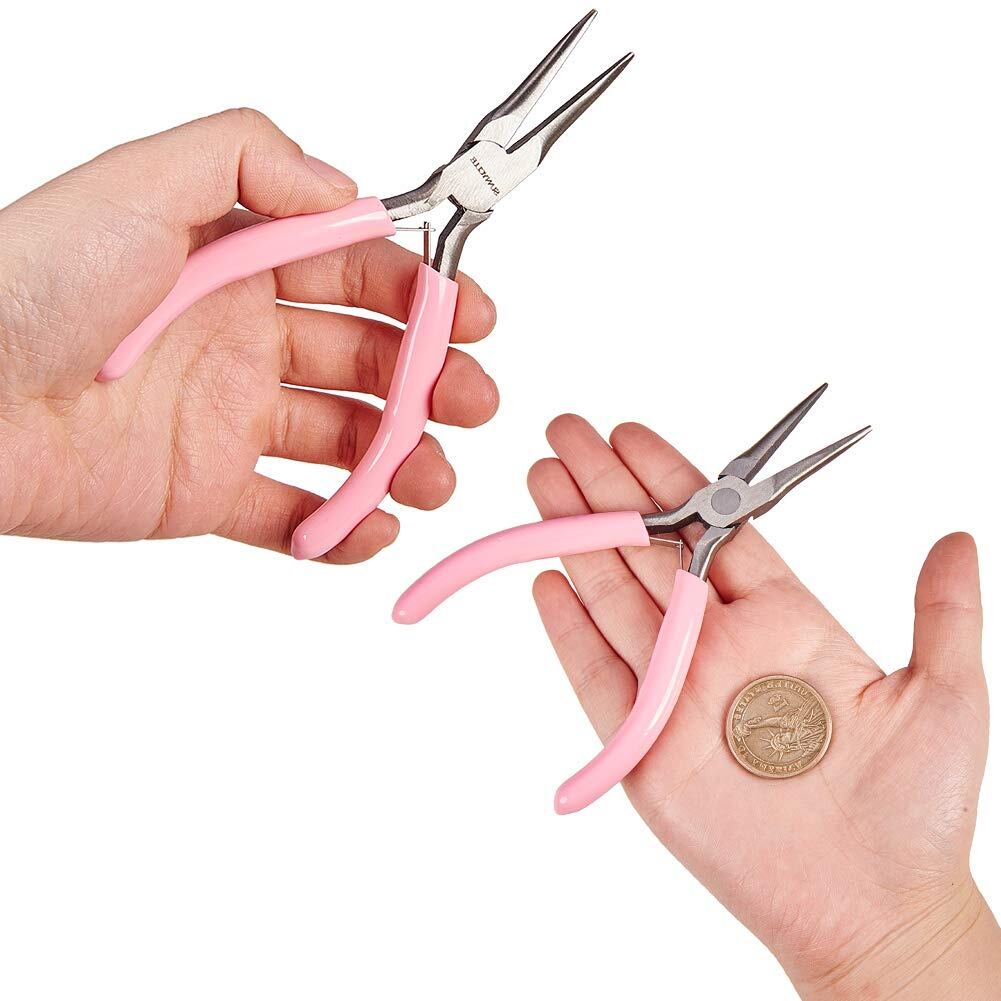 SUNNYCLUE 5インチロングチェーンノーズプライヤー付きフラットジョーミニ精密ペンチdiyジュエリー作り趣味プロジェクトピンク