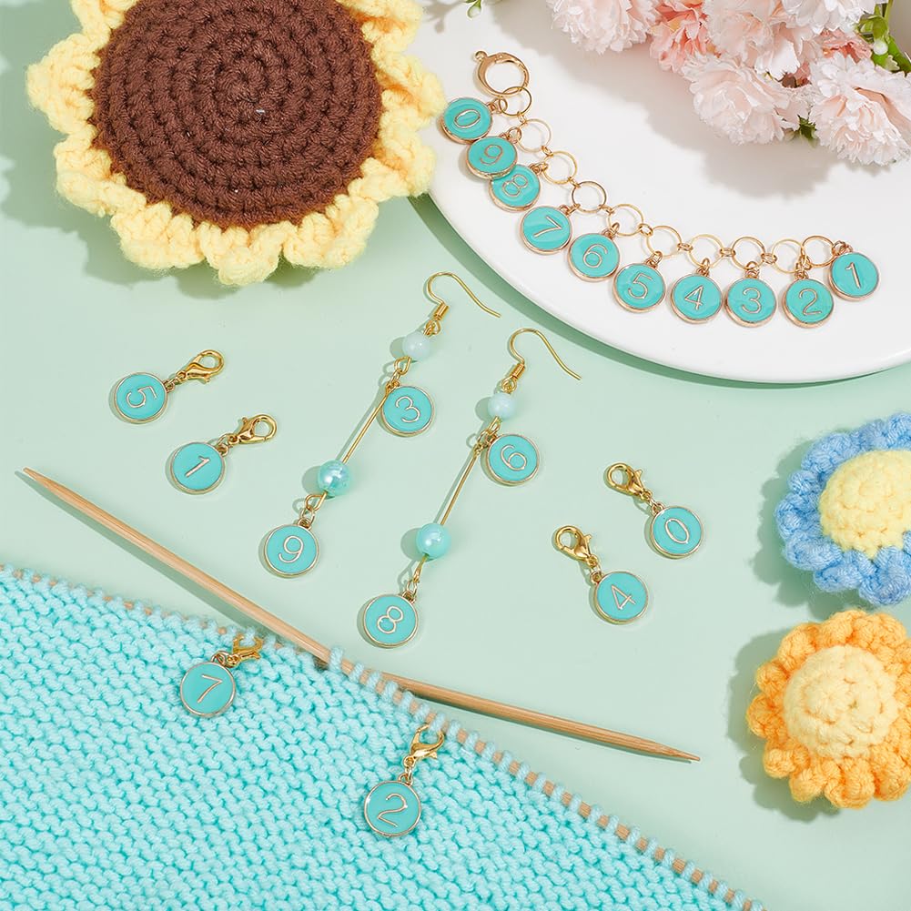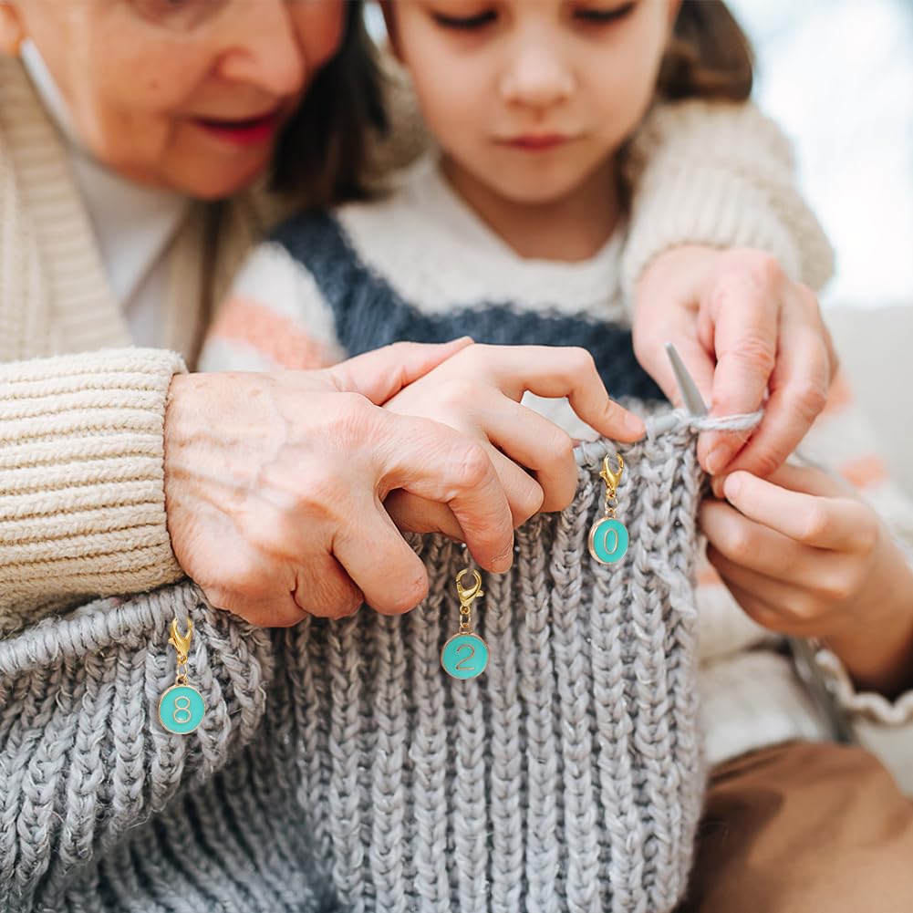 BENECREAT 11点 段数マーカー 数字ステッチマーカー 0~9 合金&エナメル かぎ針編み用ローカウンター 段かぞえマーカーセット 編み物マーカー 段数リング 編み物ツール 収納ケース付き ターコイズ
