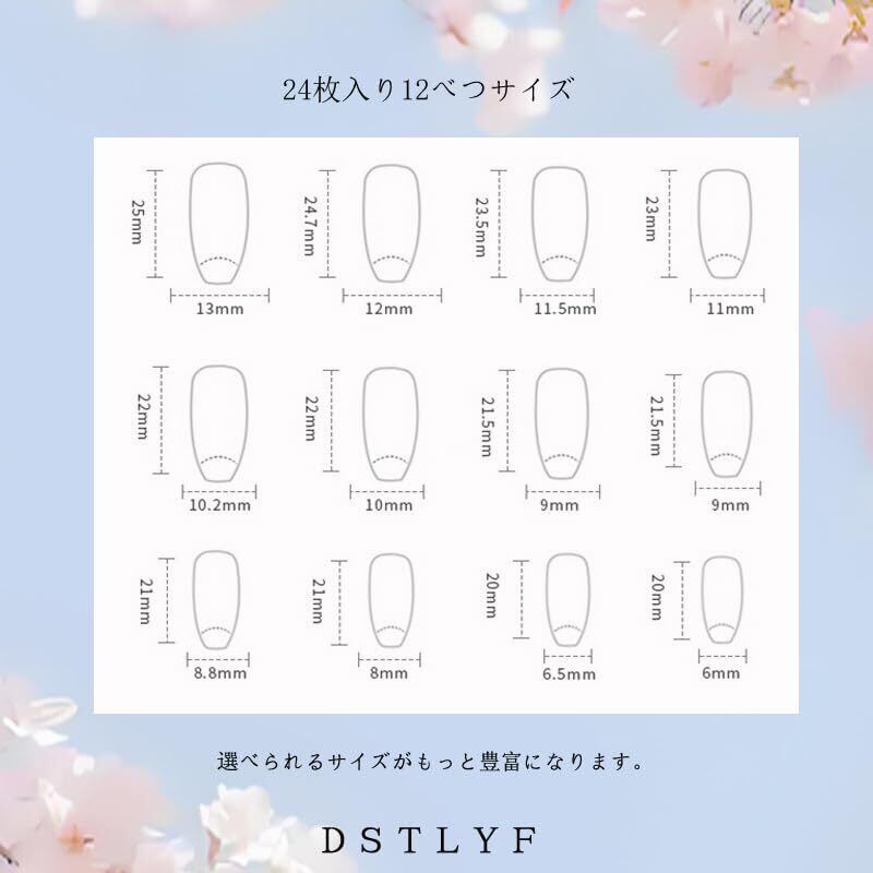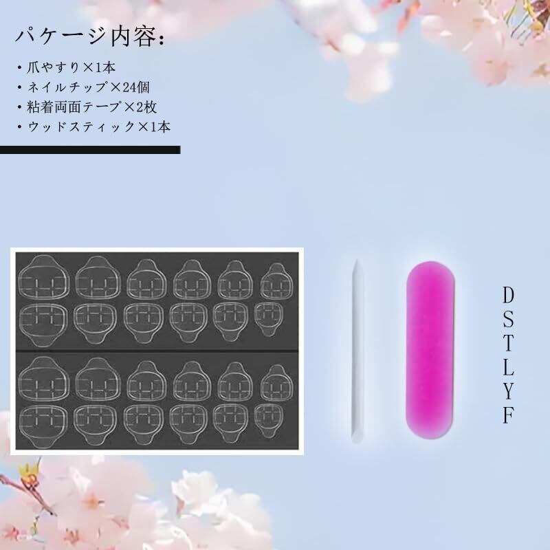 【豊富なツールキット内容】ネイルチップ24枚(12別サイズ×2)、両面テープ48個、爪ヤスリ1本、木棒1本が含んで梱包して発送し、届いたらすぐに使用できます。