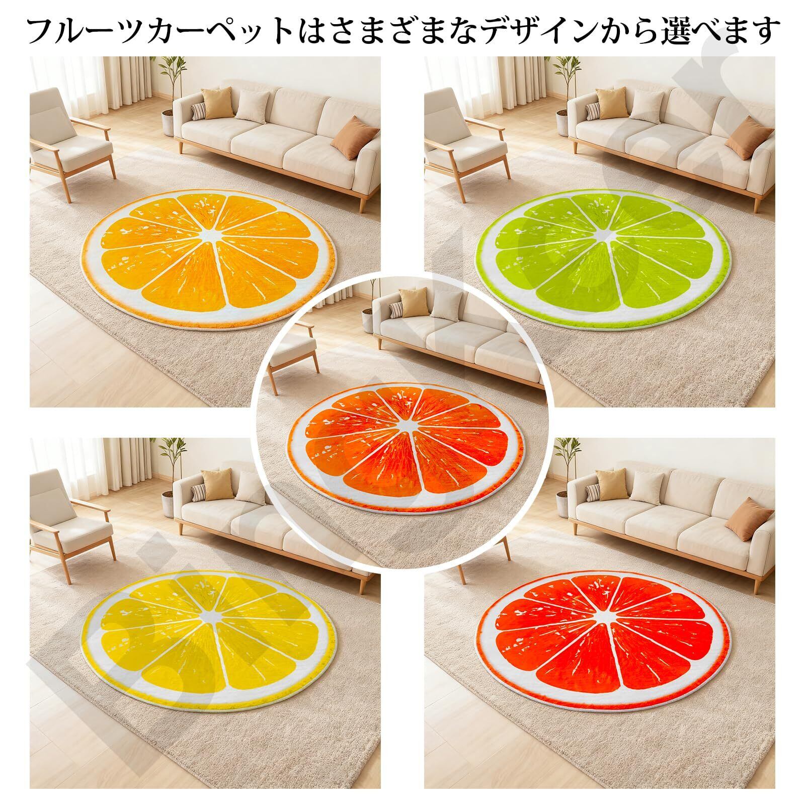 円形レモンスライス柄ラグマット 緑色 短毛 カーペット 直径 120cm 滑り止め 洗える 防音 オールシーズン対応 リビング/寝室/子供部屋用