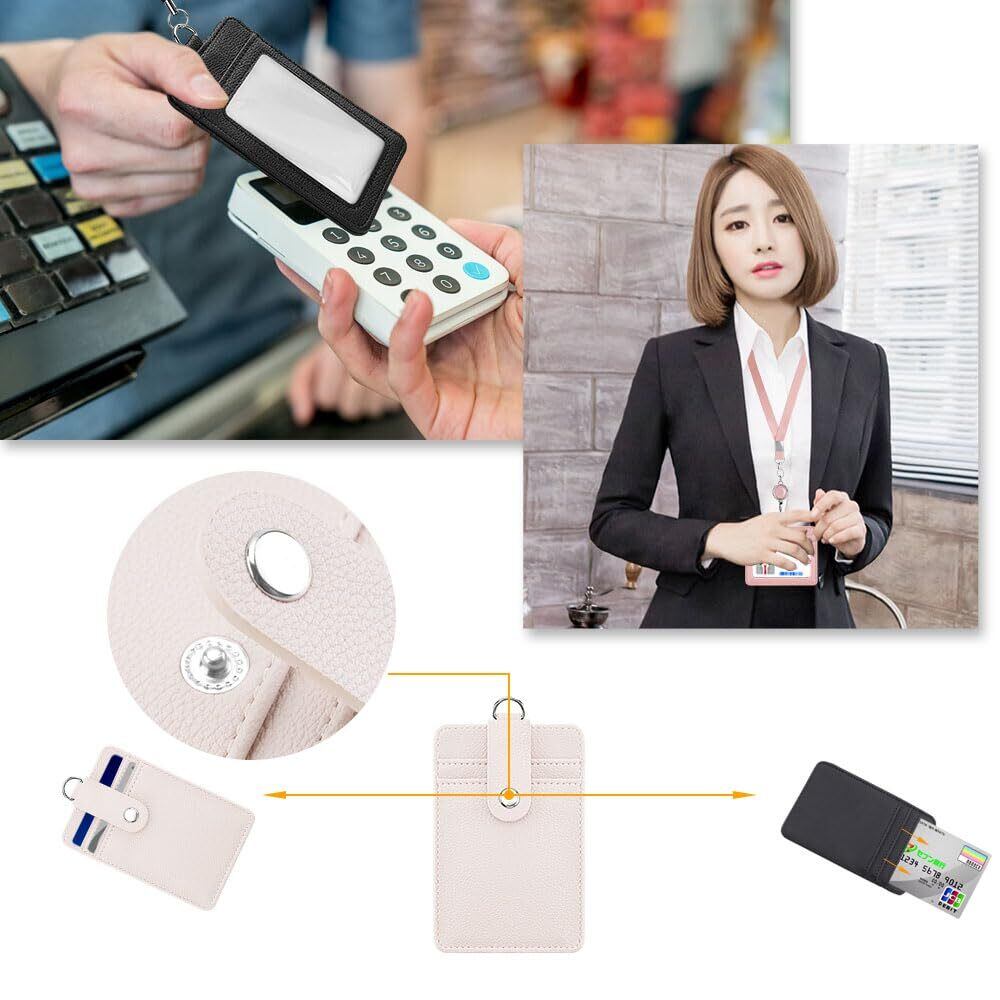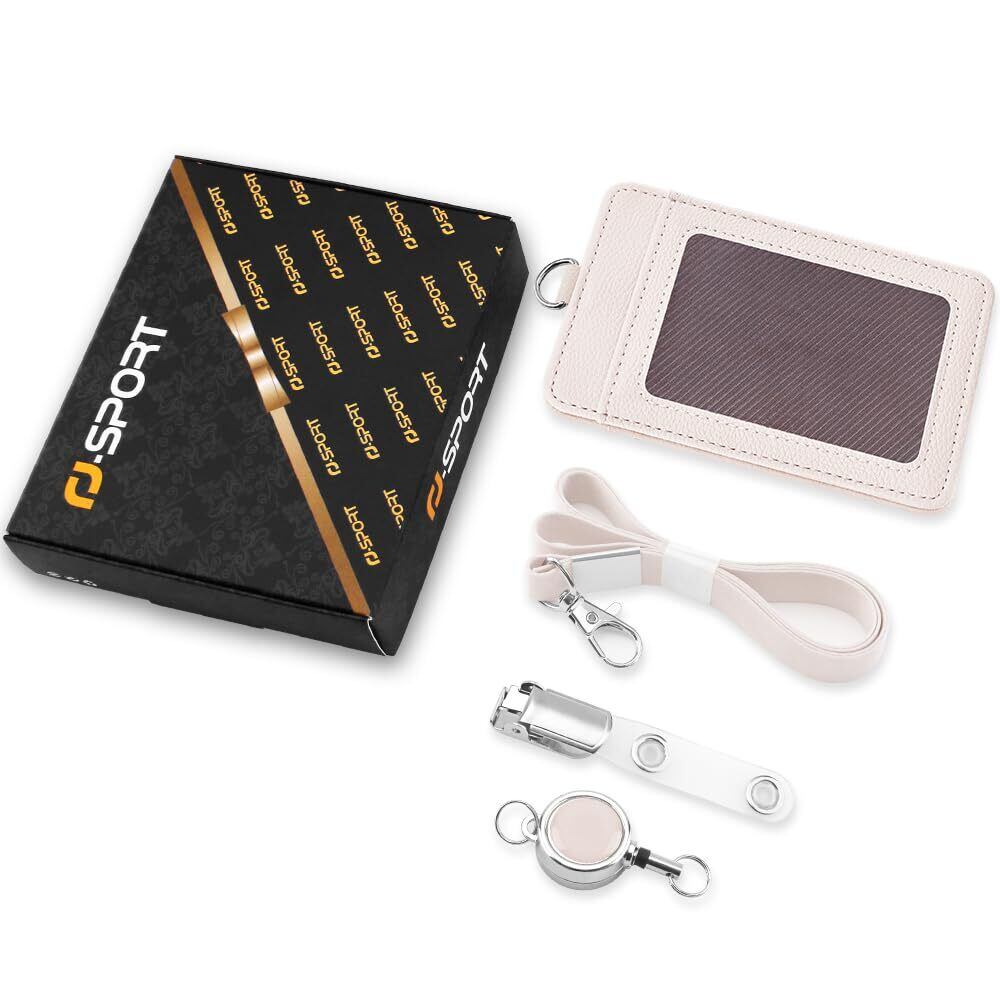 IDカードホルダー - 横型&縦型 IDカードケース 社員証 定期入れ ネームホルダー 両面用 名札 パスケース 胸ポケットクリップ&伸縮リール式 クリップストラップ付き (縦型クリーミーホワイト)