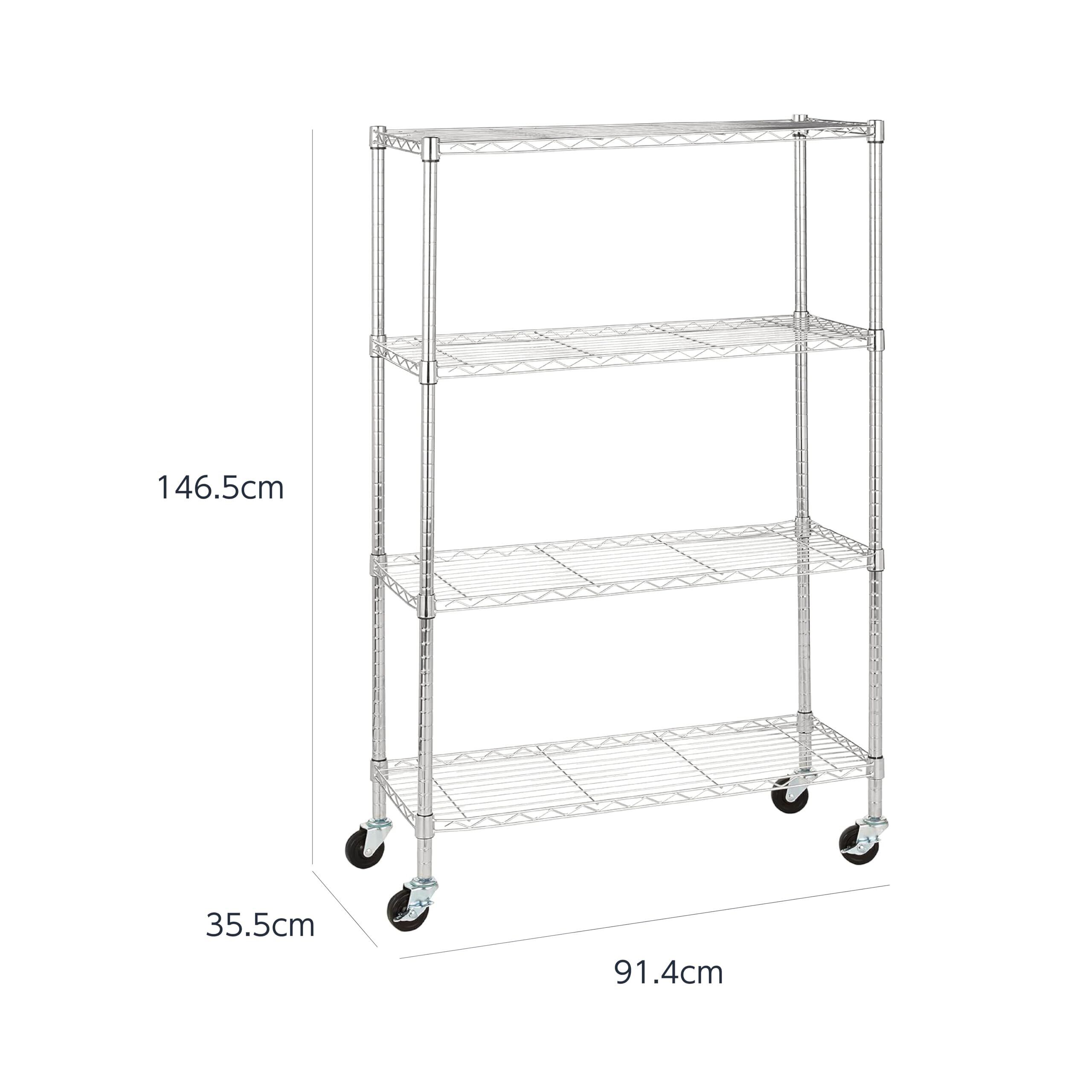 ベーシック 4段スチールラック 棚 メタルラック キッチンラック キャスター付き 耐荷重160kg 幅91.4 x 奥行35.6 x 高さ146.7cm クロム