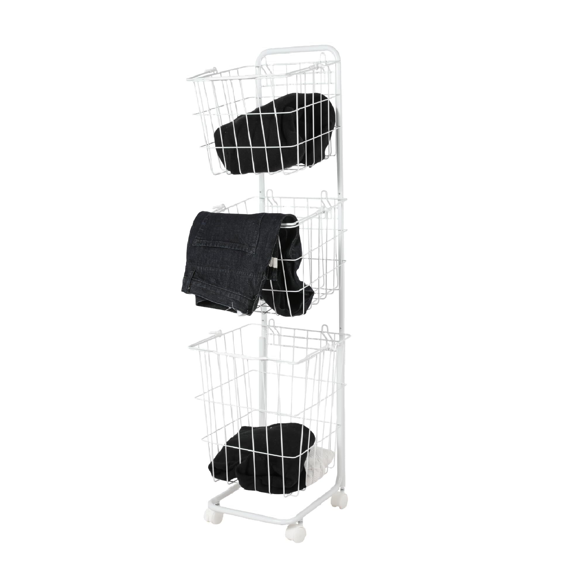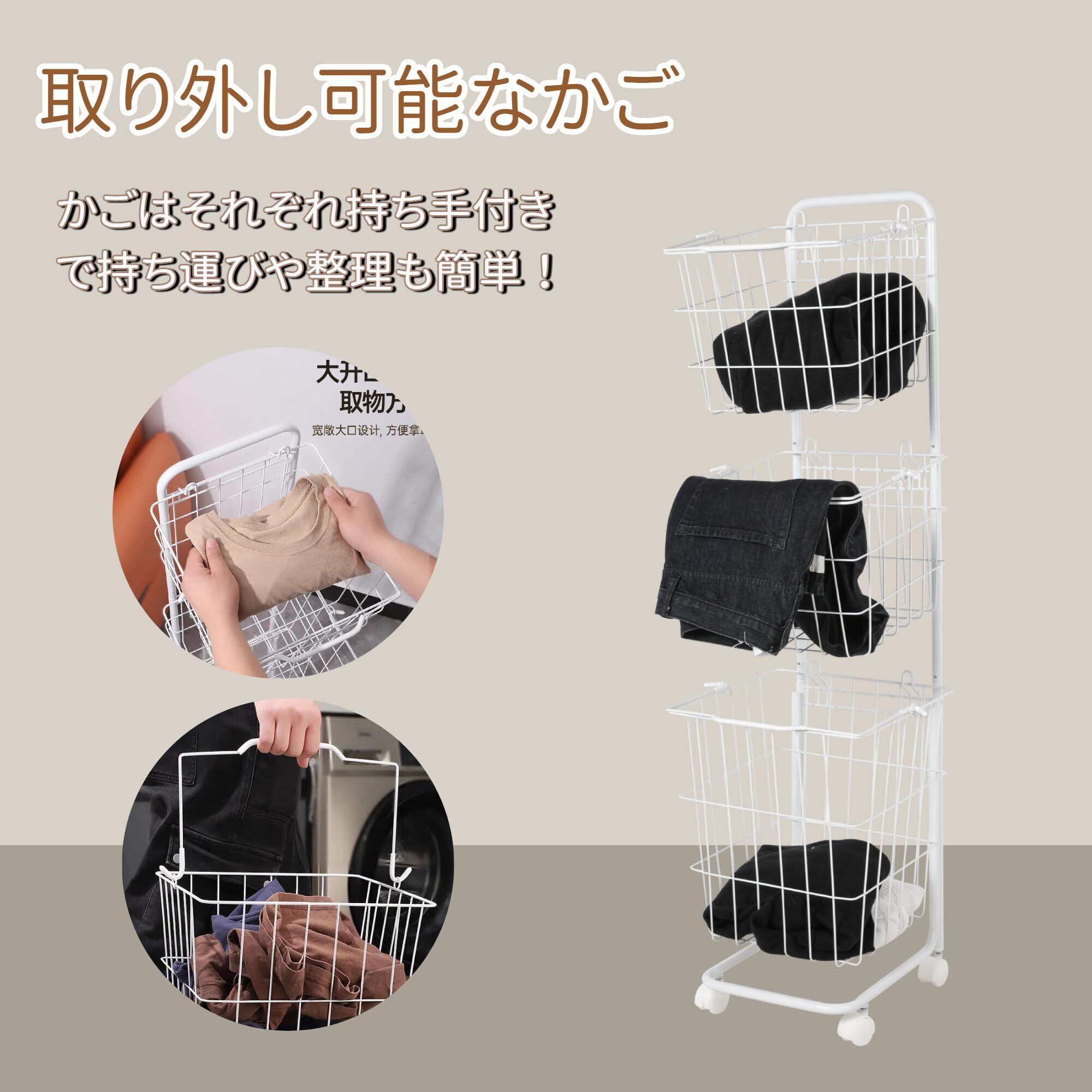 Saiveina 洗濯かご ランドリーバスケット 大容量 3段 洗濯物収納 ランドリー収納 キャスター付き 持ち手付き 収納ラック 取り外しバスケット 通気性いい ホワイト 四角い