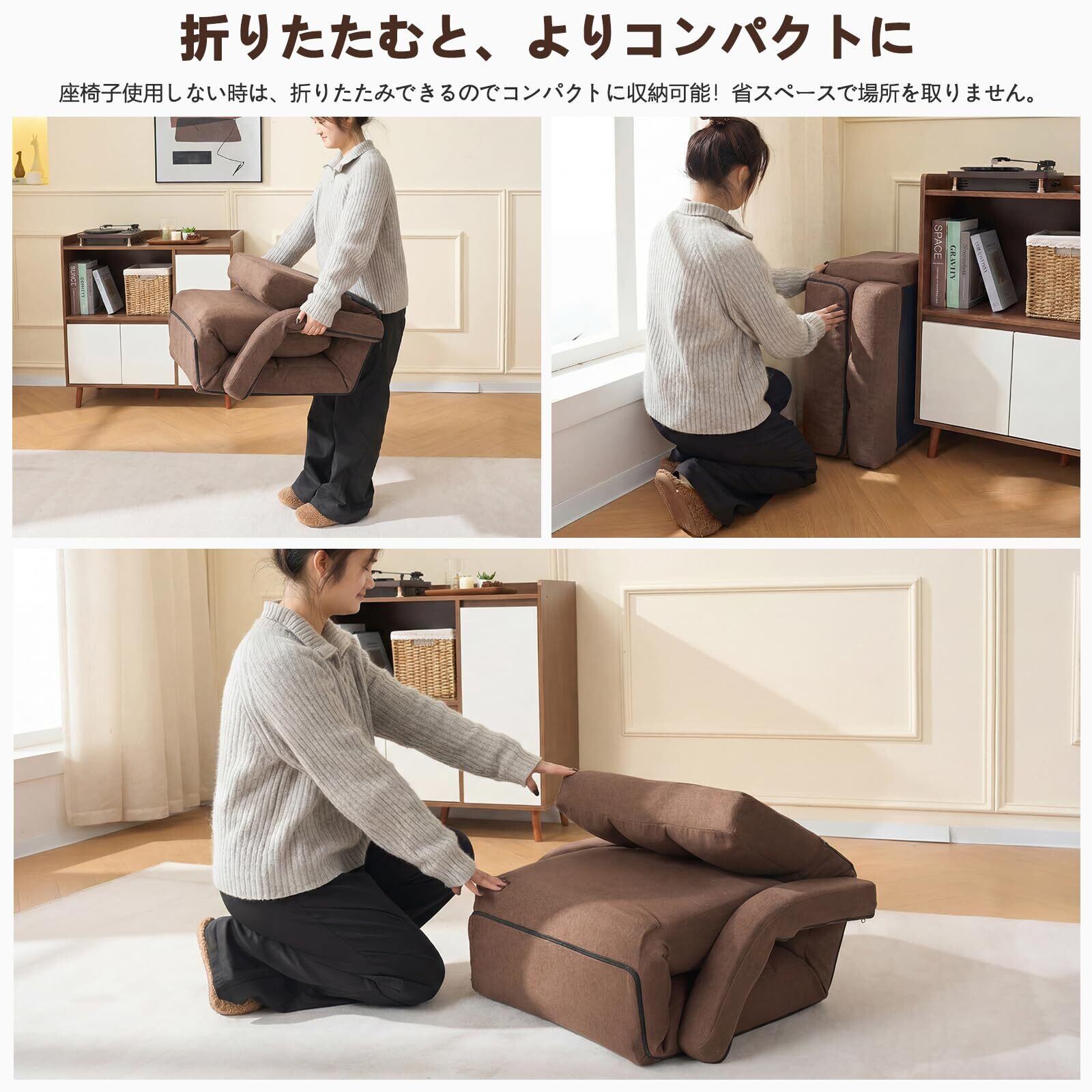 KYODA 座椅子 肘掛け リクライニング 14段階 脚置き フットレスト ロングタイプ 折りたたみ コンパクト ゆったり 大きめ ハイバック フロアチェア 座椅子ソファー ソファベッド 寝れる椅子 腰が痛くならない 1人掛け 一人暮らし 1人用ソファ ロングチェアー 一人用 ソファー 座イス ビッグサイズ かわいい おしゃれ (ブラウン)