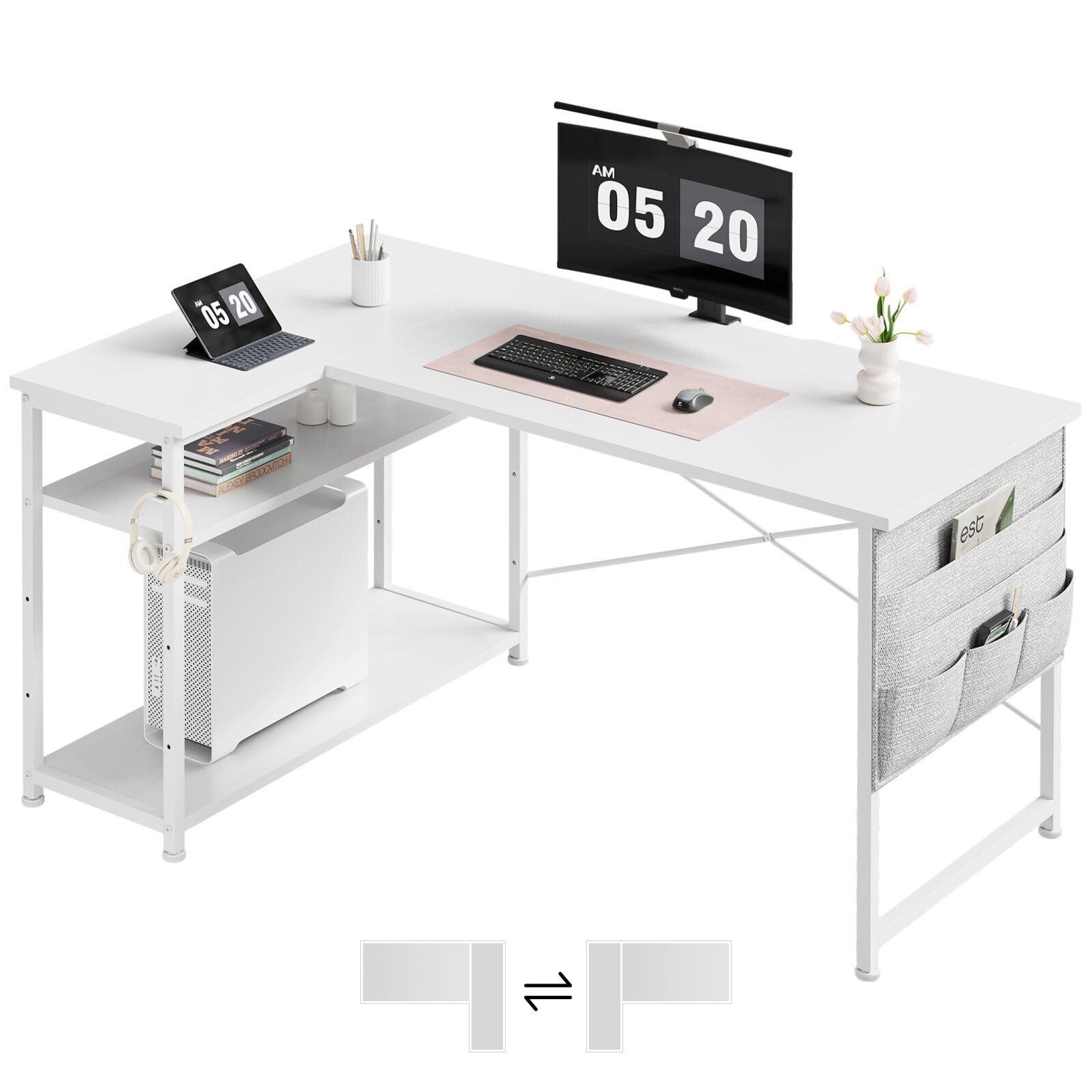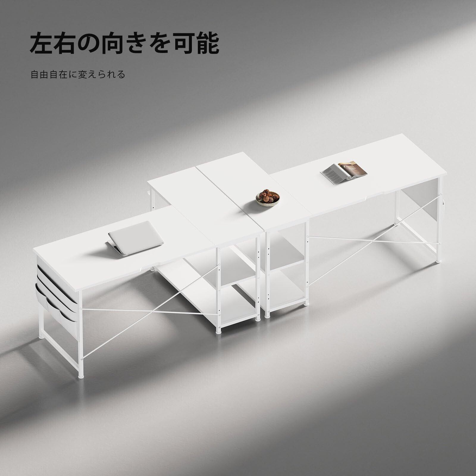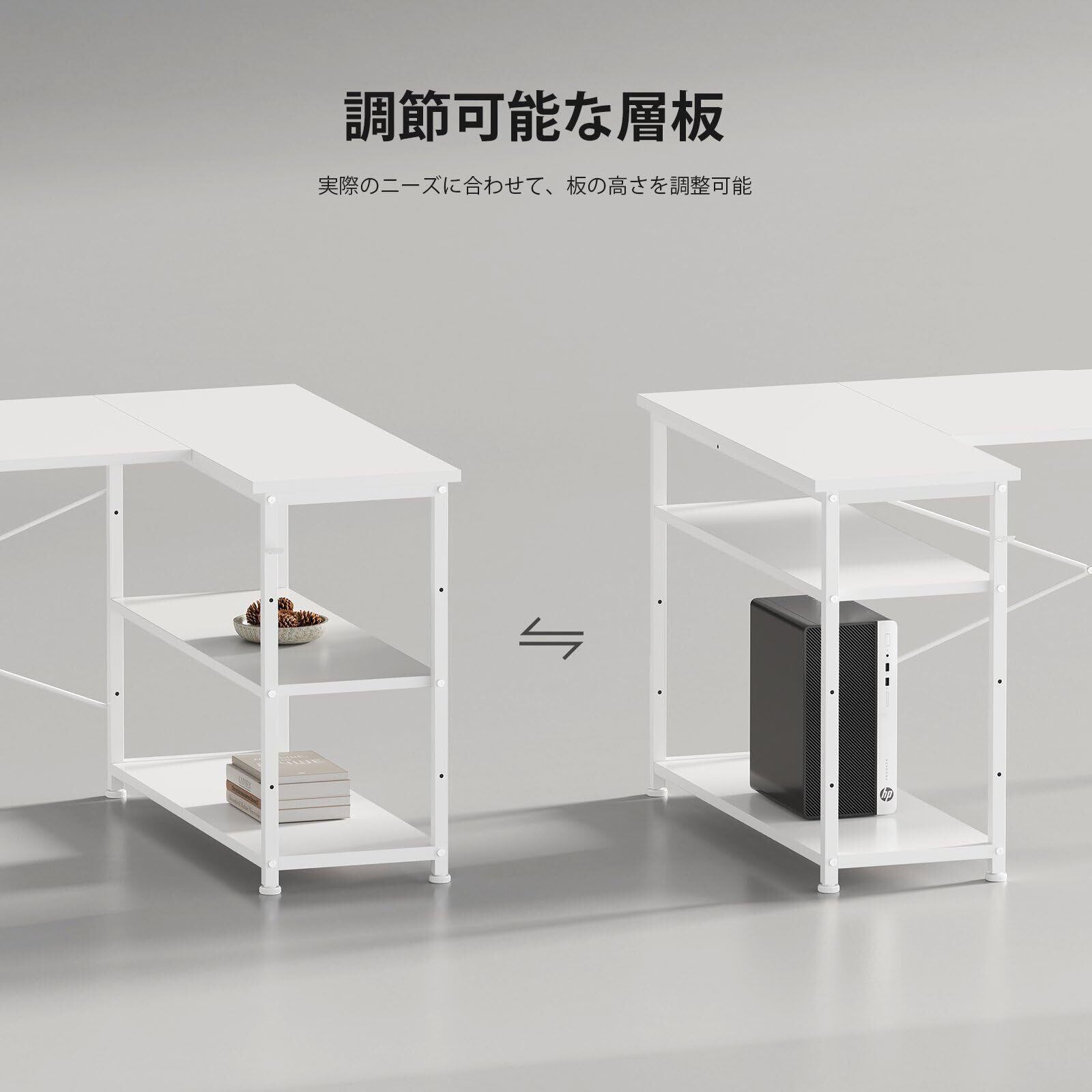 Maihail l字デスク 机 pcデスク 学習机 勉強机 パソコンデスク 右棚左棚 幅99cm コーナーデスク つくえ 棚板高さ調節可能 作業机 L字型 リモートワーク ラック付き 白い