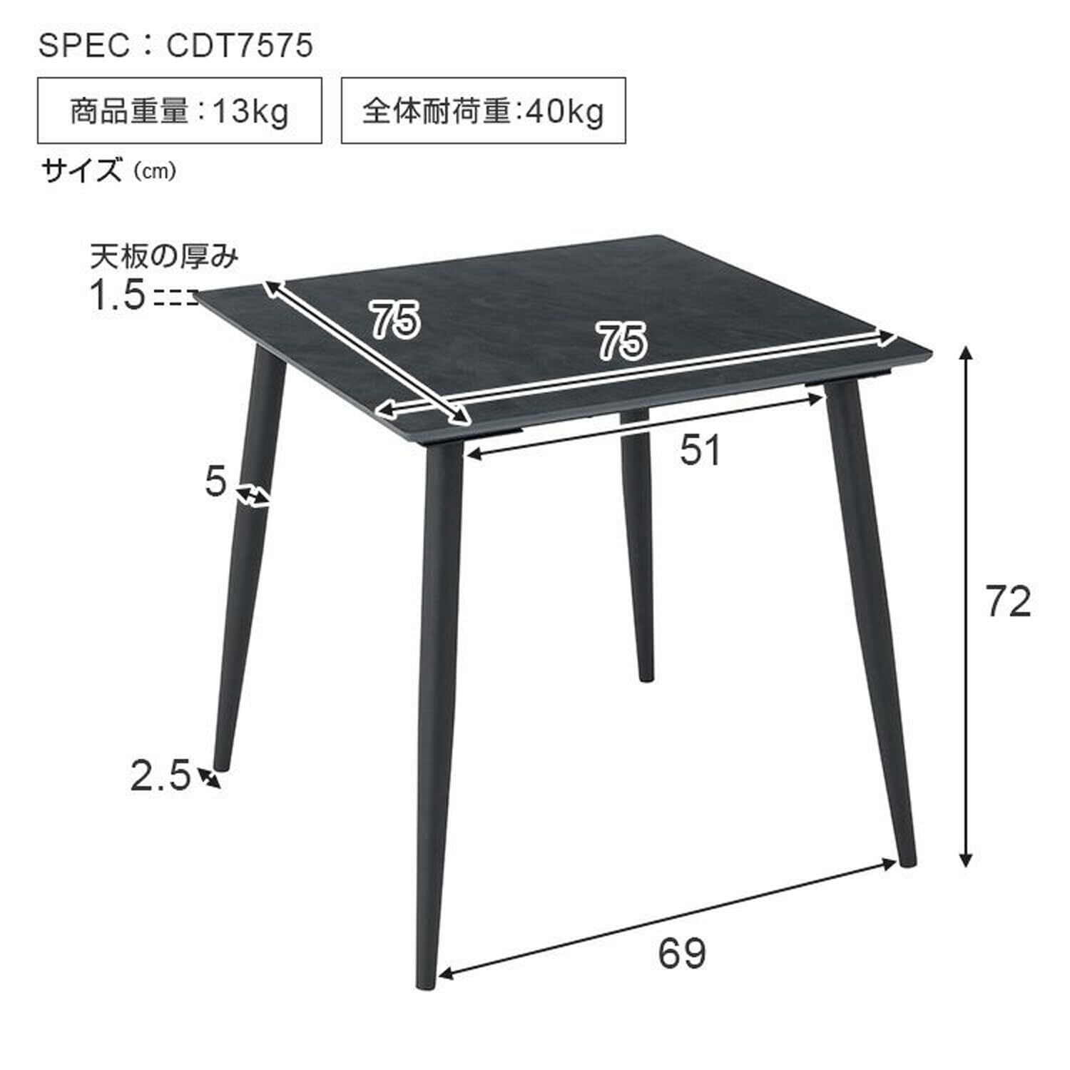■水も汚れもサッと拭ける!■ セラミック調ダイニングテーブル 幅75cm 高さ72cm メラミン天板でキズに強い アイアン(スチール)脚 2人〜4人対応 韓国インテリア風 作業台にも CDT7575
