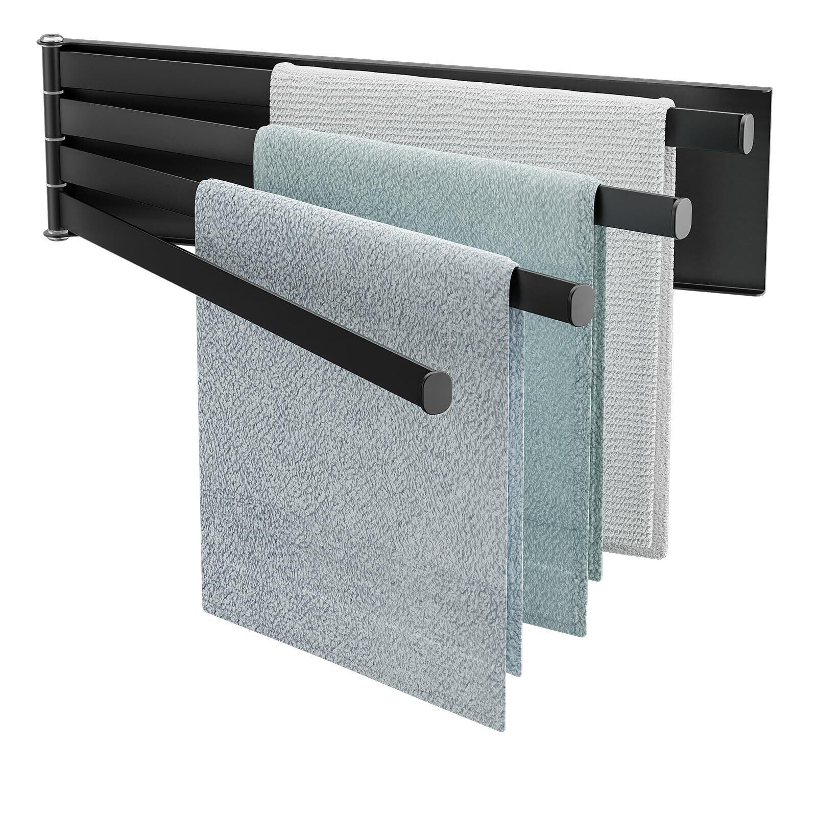 GAGUIUP マグネットタオルハンガー 浴室用ラック 4段展開 超薄型 浴室/キッチン収納 工具不要 賃貸対応(ブラック)