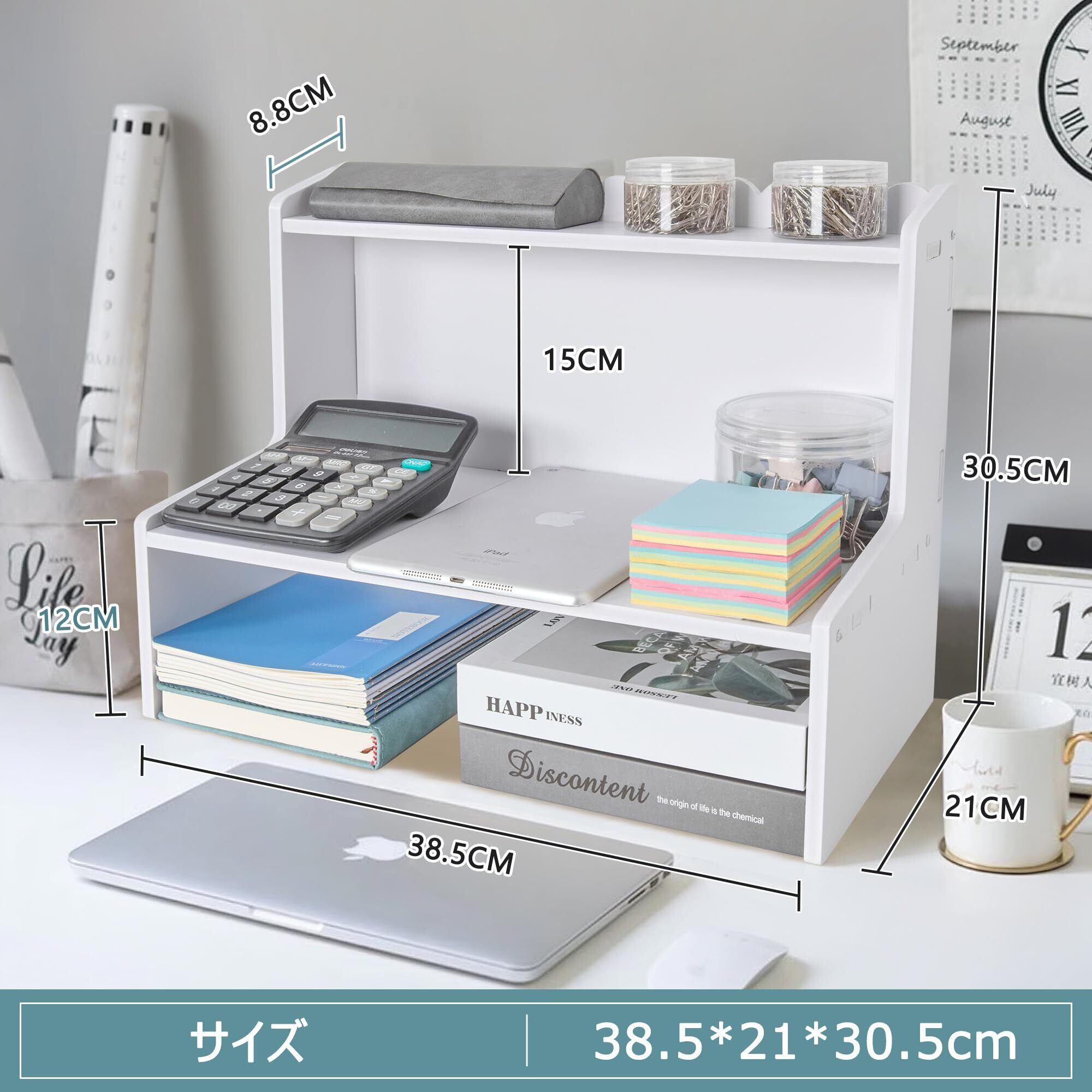 VECELO 卓上収納 デスク上置き棚 卓上置棚 机上ラック おしゃれ デスク棚 整理整頓 オーガナイザー ペン立て 収納ボックス 棚 文房具 小物収納 化粧品収納 小物入れ 多機能 机上収納 幅38.5x奥行き21x高さ30.5cm