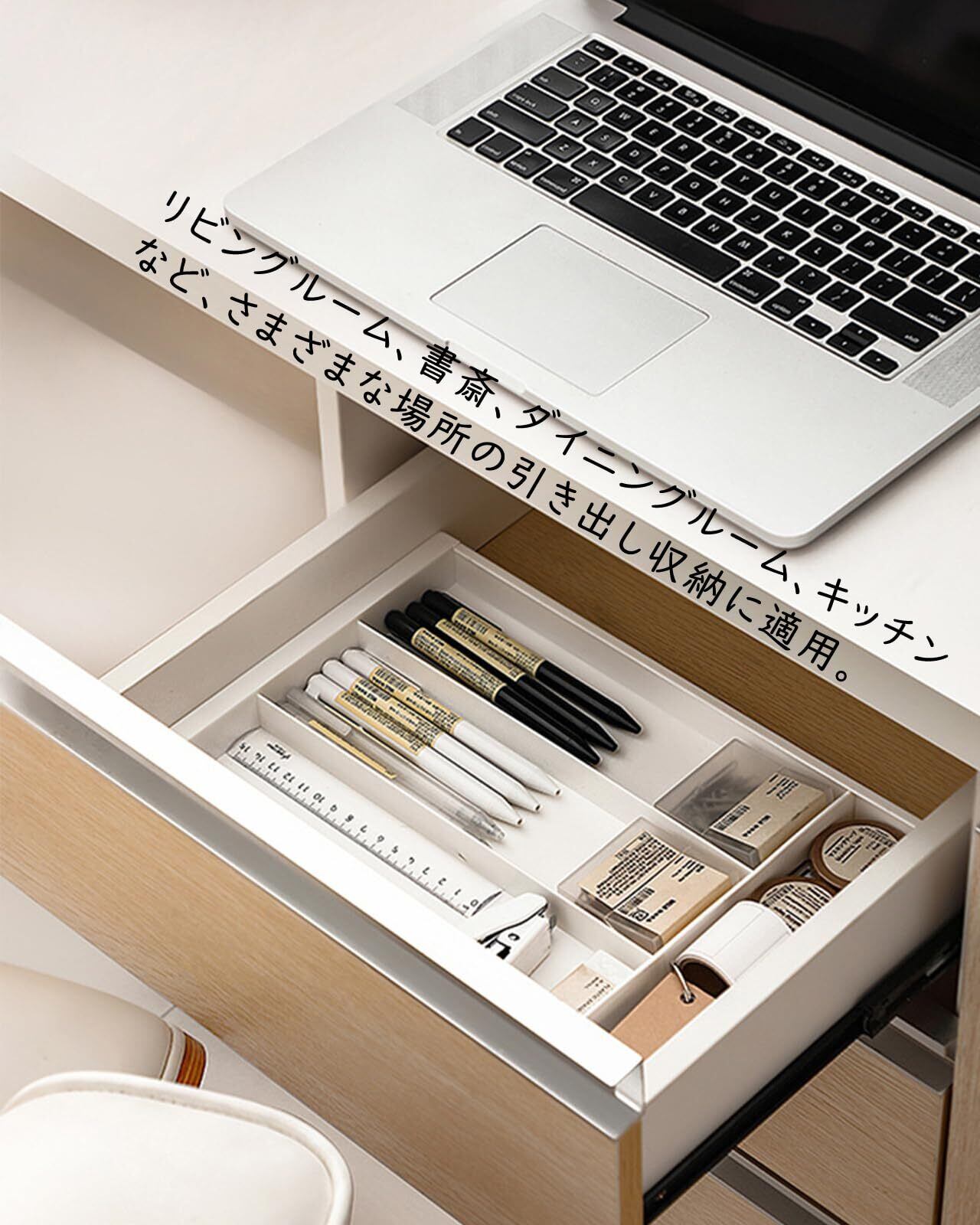 【幅広い適用シーン】この引き出し 収納ボックスは、リビングルーム、書斎、ダイニングルーム、キッチンなど、さまざまな場所の引き出し収納に適しています。家庭の日常整理やオフィスのデスク整理にも最適で、スペースをきれいで効率的に保ちます。