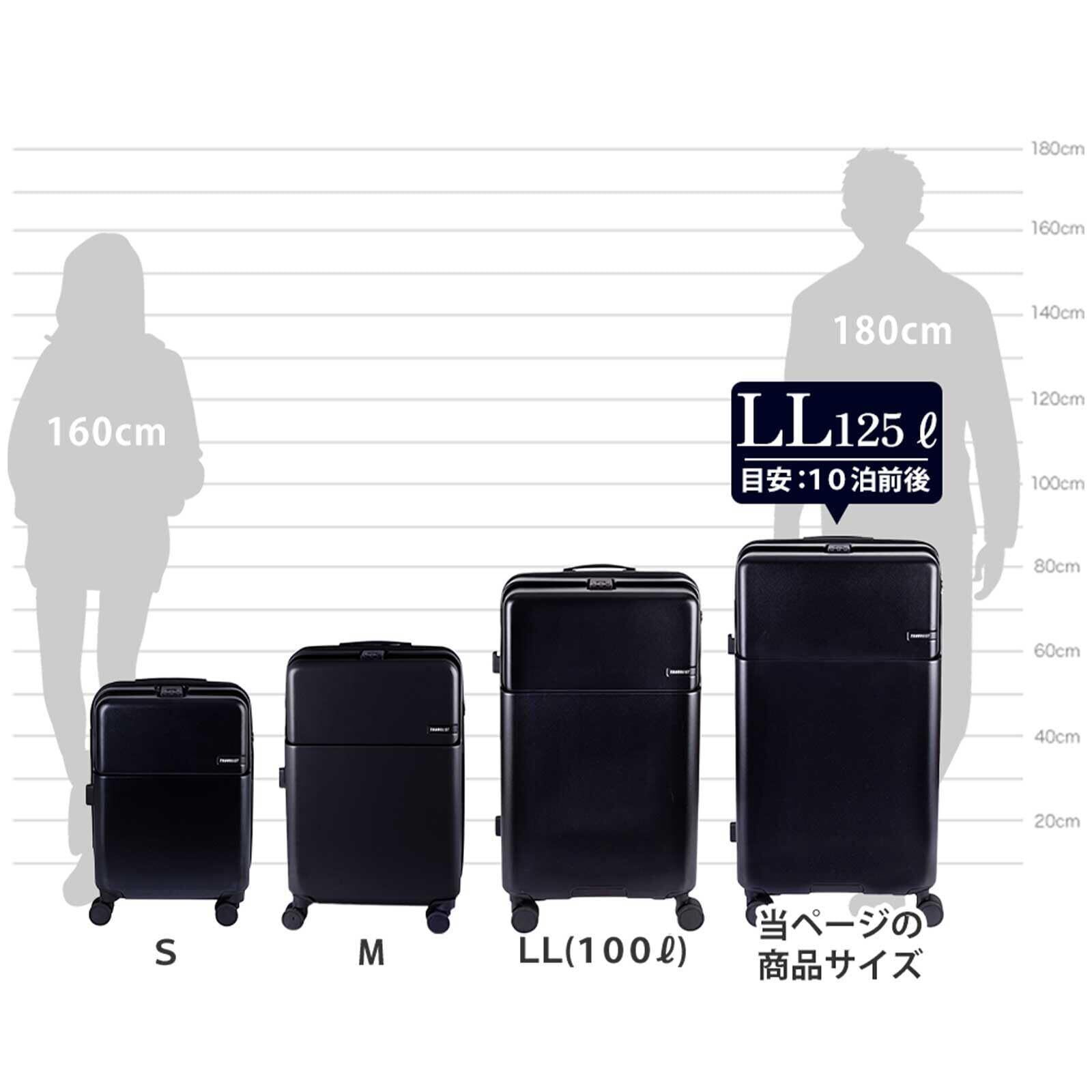 スーツケース キャリーケース ジッパー トップオープン ブレーキ付き 拡張機能 ファースト (ブラック, 125L(拡張時143L))