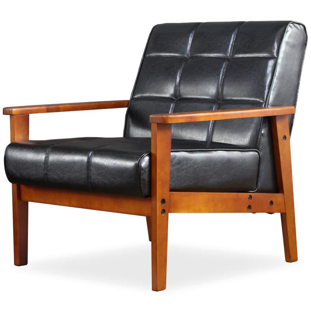 岩附 ソファ 1人掛け レザー 合皮 肘付き 天然木脚 幅74cm 黒 ブラック レトロモダン ヴィンテージ IW-72-1P
