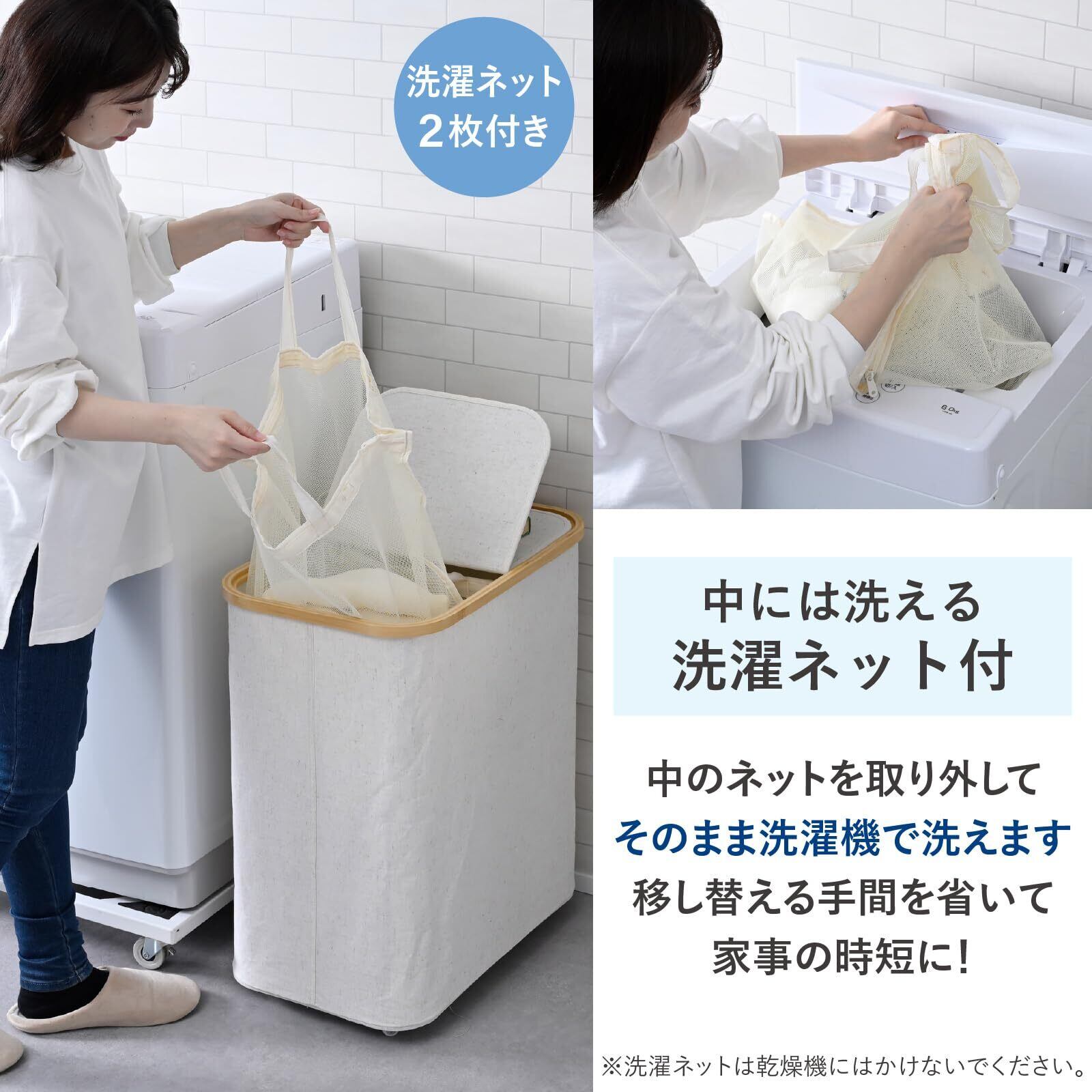 ●サイズ(約) : 幅55×奥行34.5×高さ63.5cm●洗濯ネット2つ付き(洗濯ネットはそのまま洗濯機で洗うことができます。乾燥機にはかけないでください。)