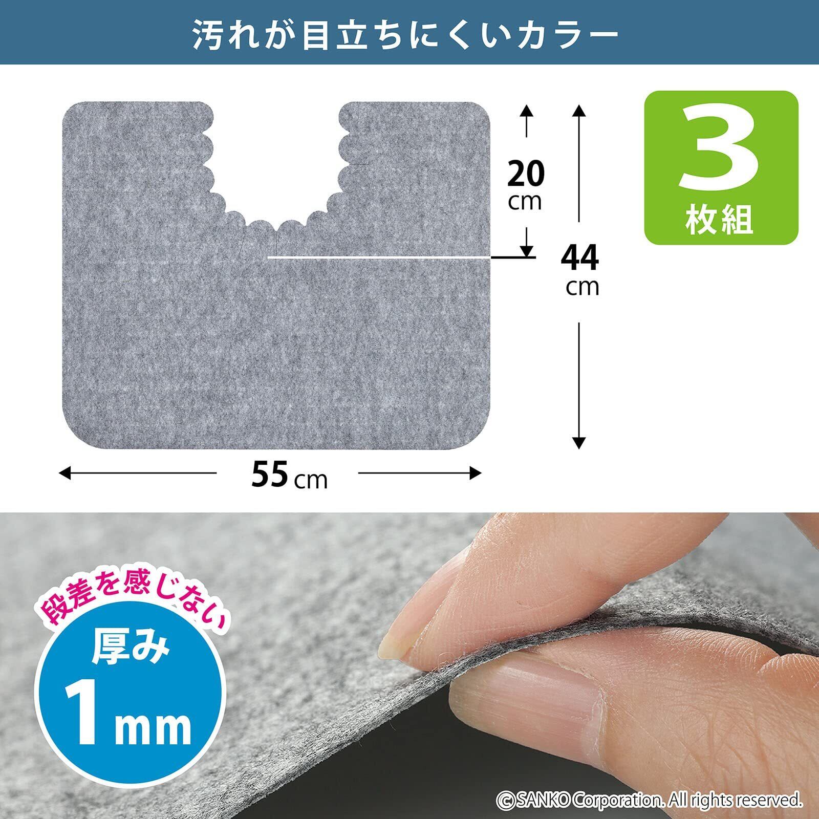 サンコー ずれない トイレマット 男性用小便器対応 床汚れ防止マット グレー 3枚入 おくだけ吸着 日本製 KJ-06 巾55×奥行44cm(厚み1mm)