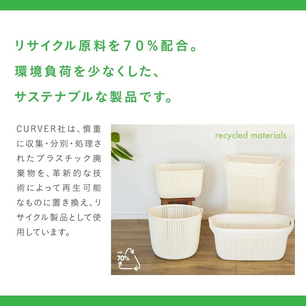 CURVER(カーバー) ふた付きバスケット ホワイト 57L Knit ニット収納 バスケット ランドリー ランドリーバスケット カゴ 洗濯カゴ おしゃれ 丈夫 北欧 リネンのような質感 環境にやさしい