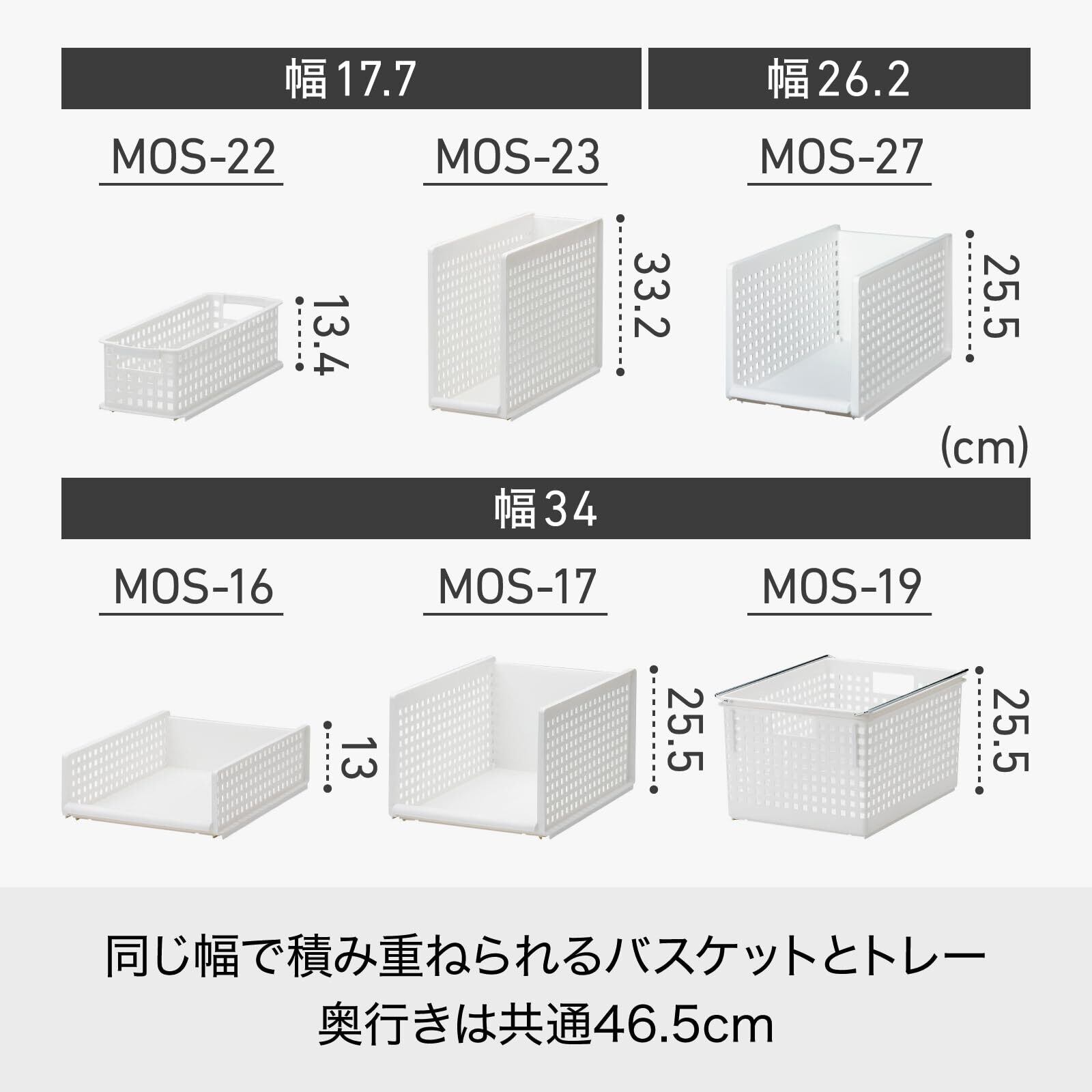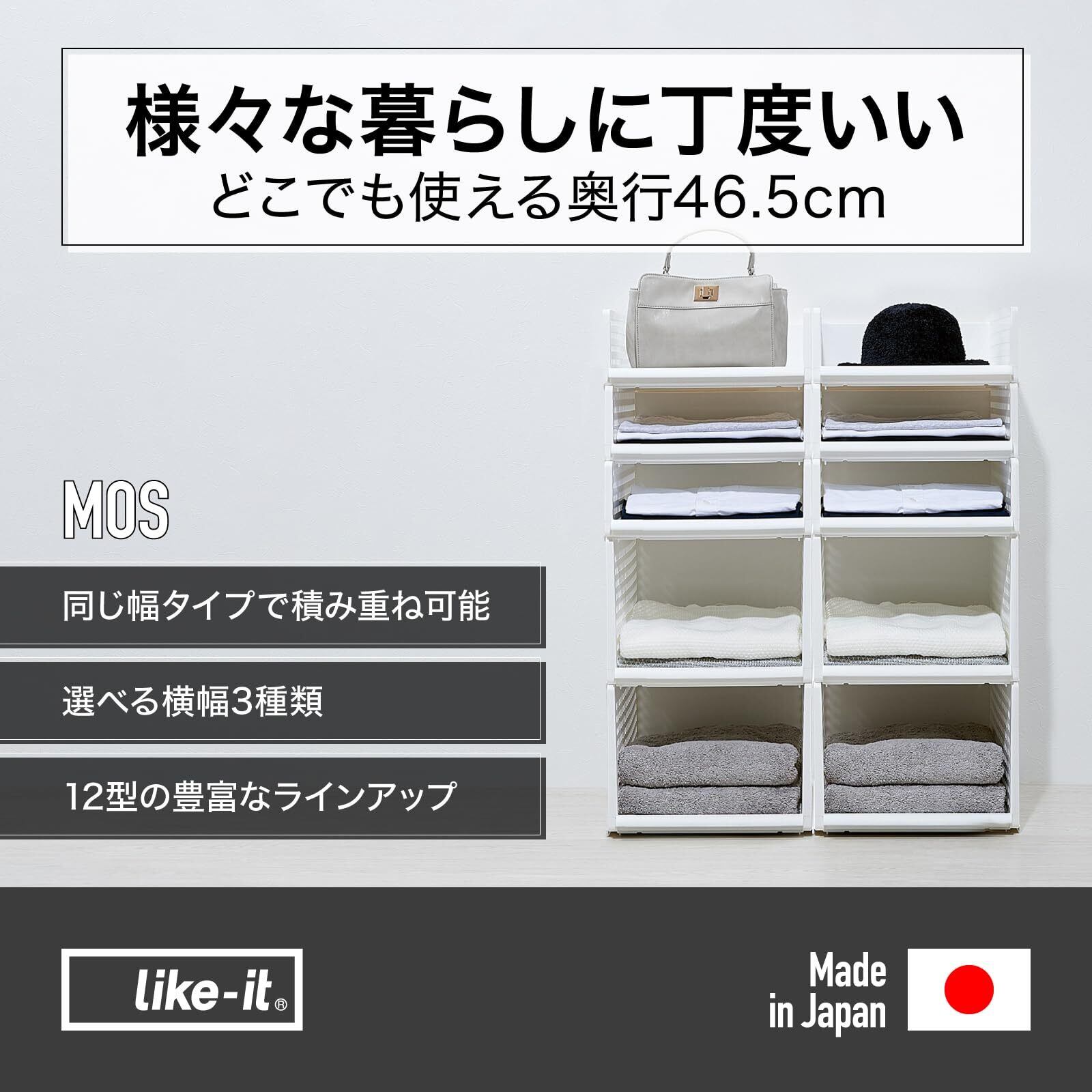 ライクイット (like-it) 収納ボックス 組み合わせて使える トレー ミディL ホワイト 日本製 MOS-27 奥行き約46.5cm クローゼット メタルラック 衣類 引出し 学用品 ランドセルワゴン キャスター取り付け可
