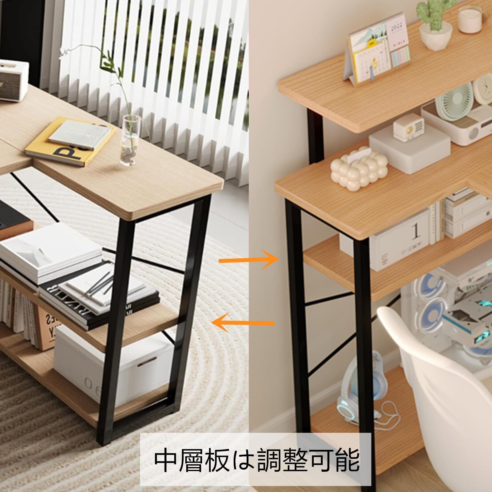 3. サイドシェルフの棚は調節可能で、書類やパソコンケースを置くのに使えます。