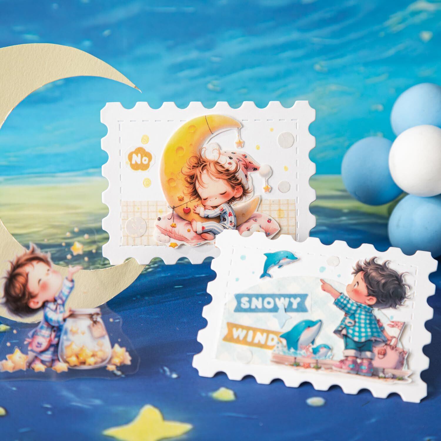 Alideco 120枚 フレークシール コラージュ 素材 ペーパー 素材紙 レースユートピアステッカーレトロかわいい男の子 海外韓国 シール帳 ,メモ用紙ノート素材、日記装飾用品 (abeibeidebairimeng)