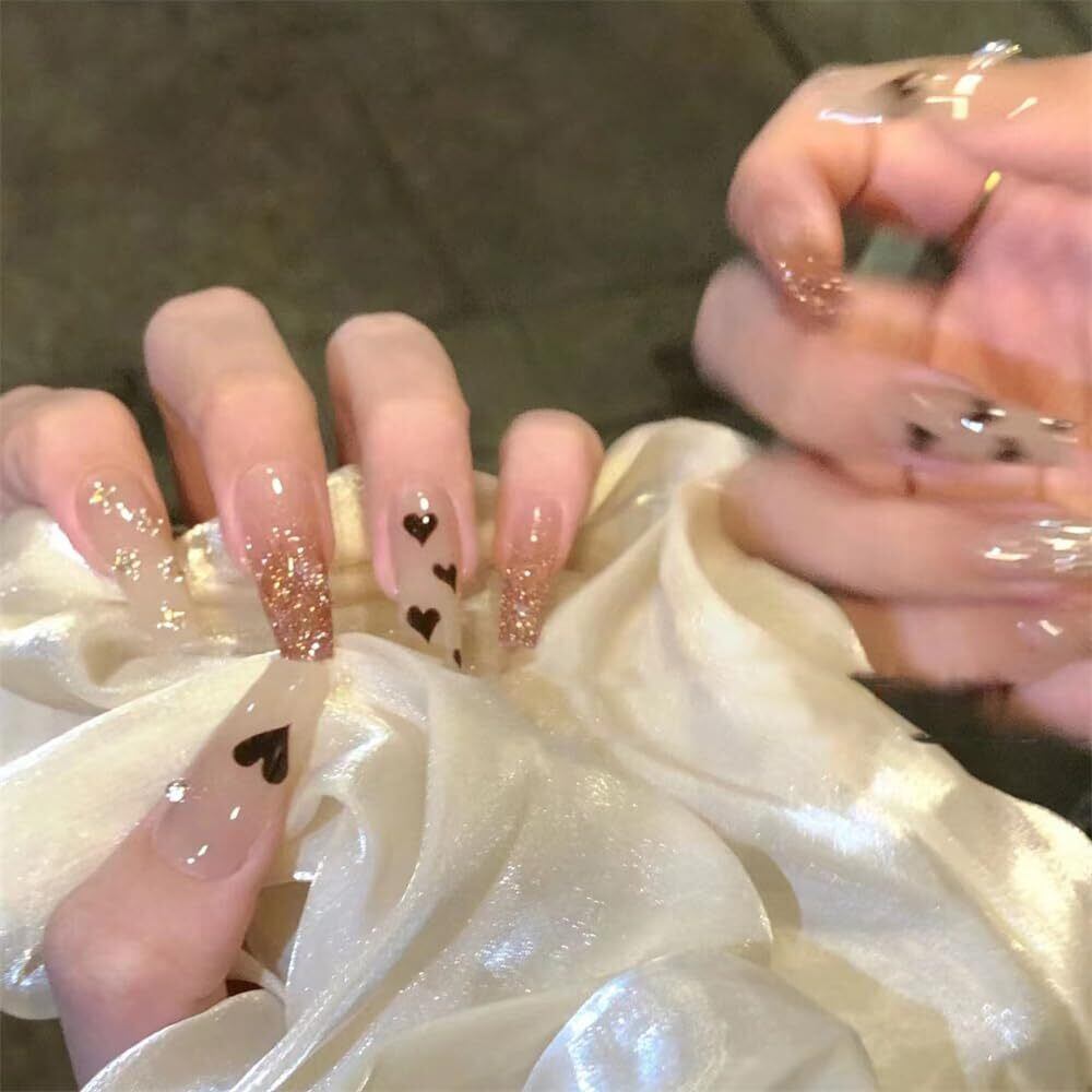 キラキラハート ネイルチップ 24枚 ショート 付け爪 秋冬デザイン 優雅ネイル かわいい シンプル 繰り返し使える 成人式 新年 入学式 卒業式 日常生活 ネイルチップ 人気 花嫁ネイル 光沢 レディース 両面テープ48個付き 標準