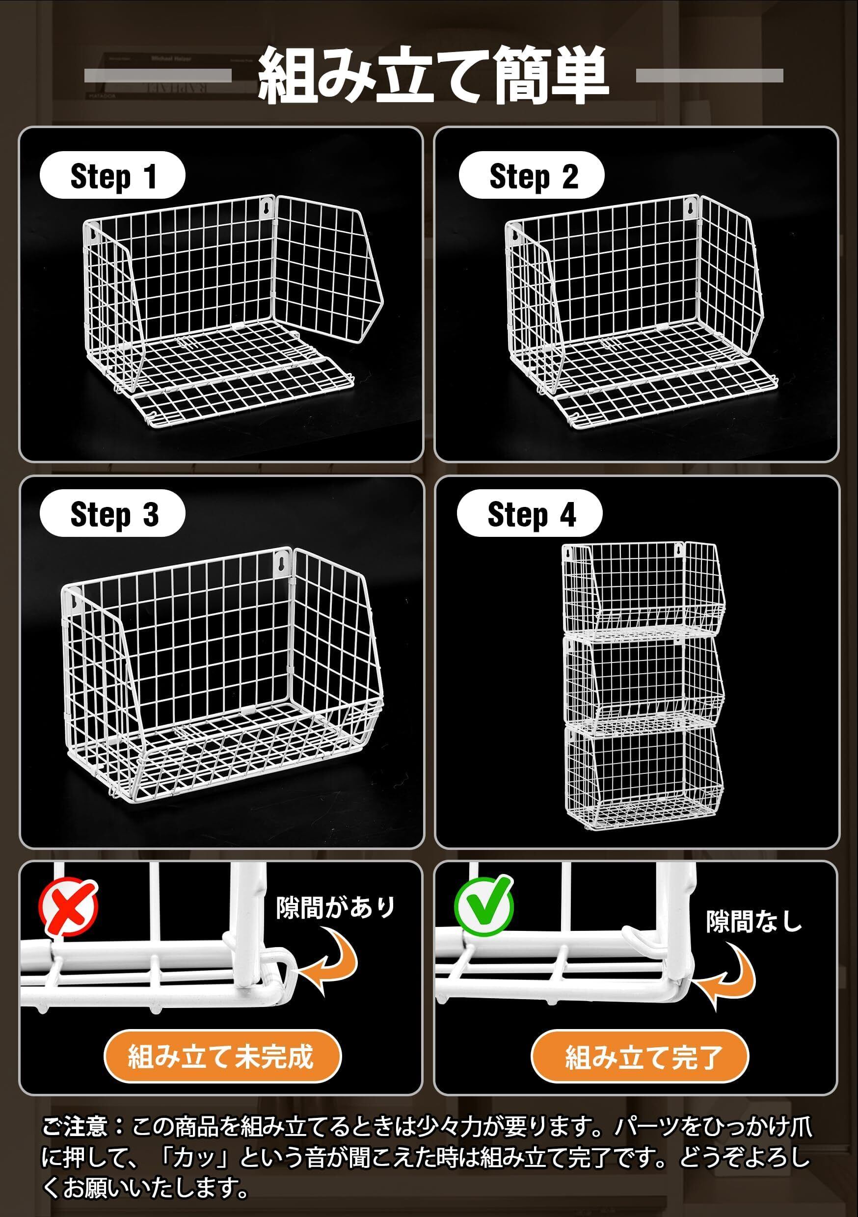 【3個セット・大容量】このワイヤーバスケットは、3 個のセットで提供されており、とてもお買い得です。1 個あたりのサイズは、幅 30.5cm*奥行 16.5cm*高さ 20.3cm で、大容量仕様です。重量は 2.46kg(単品:0.82kg)です。野菜や果物、調味料、お皿など、様々な物を収納することができます。