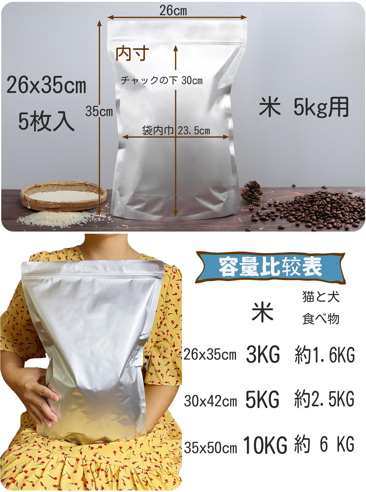 米袋 3kg お米保存袋 お米 保存容器 食品 おこめの袋 3キロ アルミ袋 ジッパー付き 袋 冷蔵庫保存 チャック付き 遮光袋 (米袋 3kg用(26x35cm)5枚)
