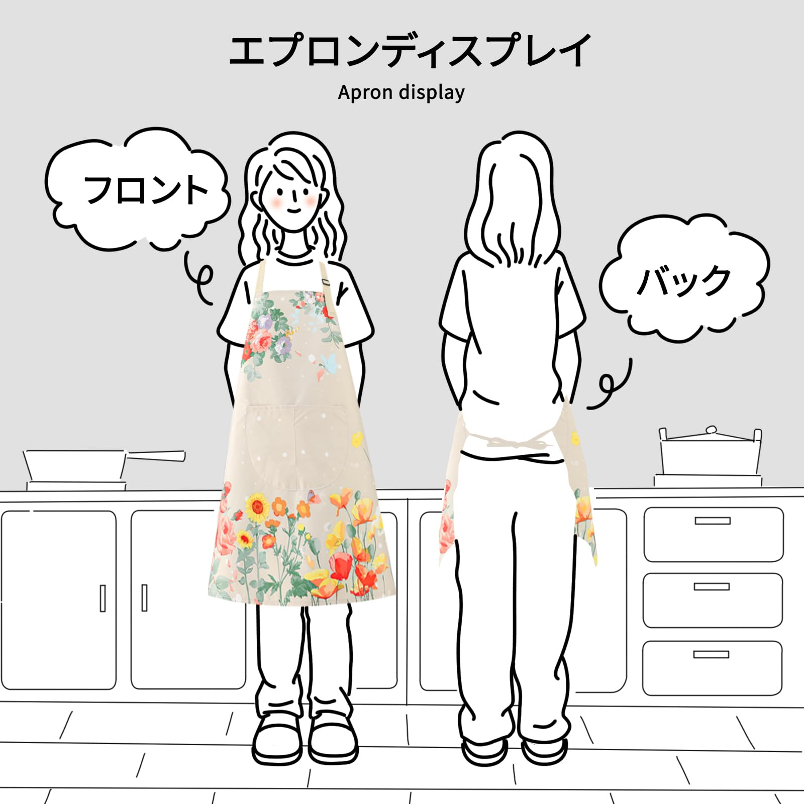 [SFTRADE] エプロン 女性用 首掛け 北欧風 花柄シンプル 防水 大容量ポケット 汚れにくい シワ防止 料理教室用 カフェ 保育士