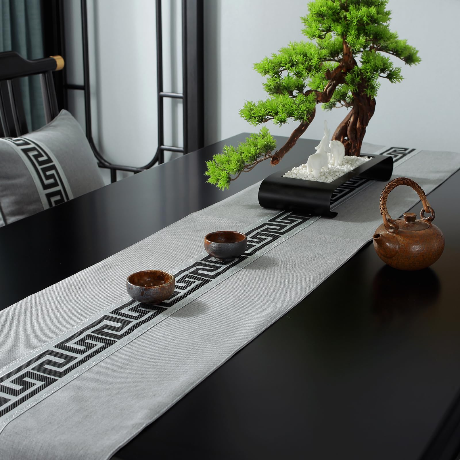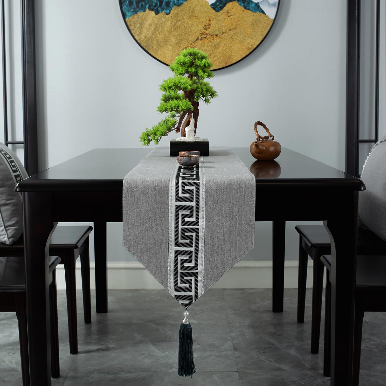 青未了 テーブルランナー 防水 厚手 テーブルセンタークロス 両面使える センタークロス テーブルらんなー table runner テーブルセンター 布 タッセル 160 x 33cm グレー