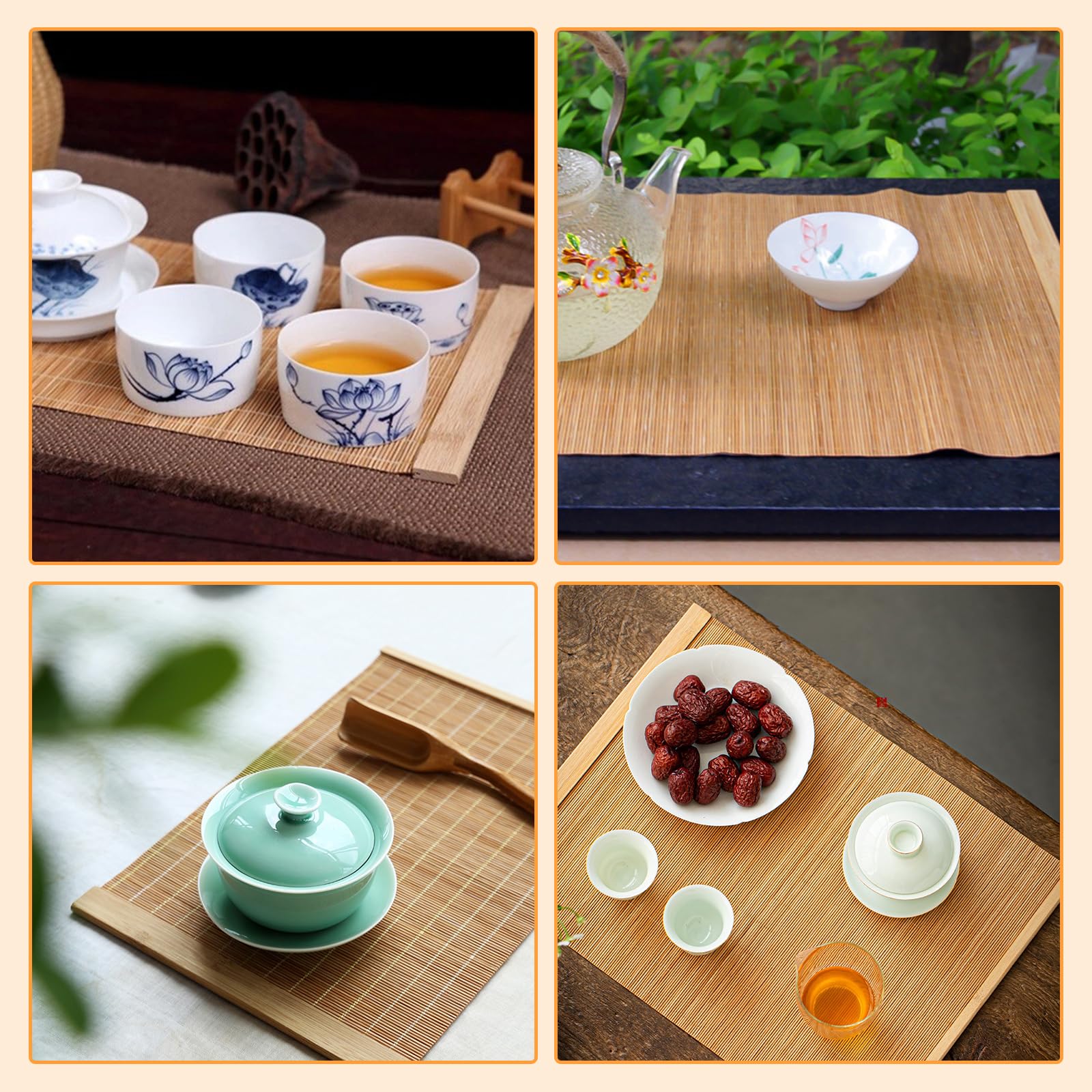 ランチョンマット プレースマット (2枚セット) 竹 お茶 マット 30×20cm 断熱 滑り止め 無地 和風 キッチン 家庭用 レストラン用 茶器 茶道用品