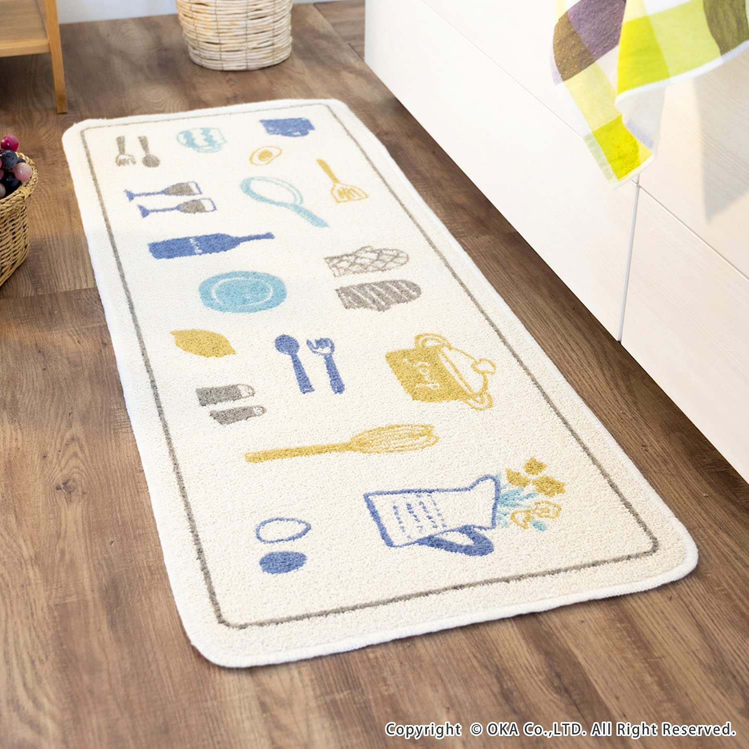 オカ(OKA) ビストロ キッチンマット 約45cm×120cm ブルー (台所マット 日本製 すべり止め)