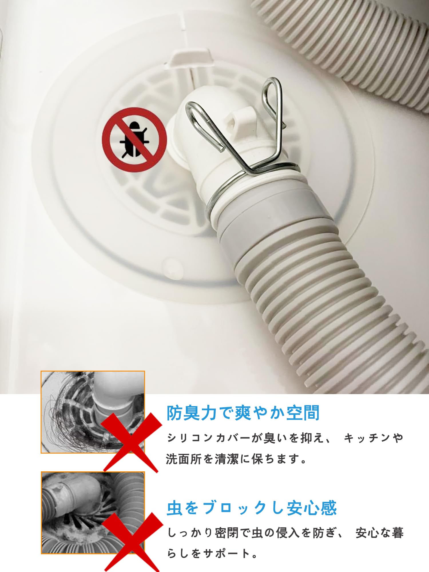 【防虫、異物侵入防止】:小さな虫が排水口から入るのを防ぎ、清潔で衛生的な生活環境を維持します。