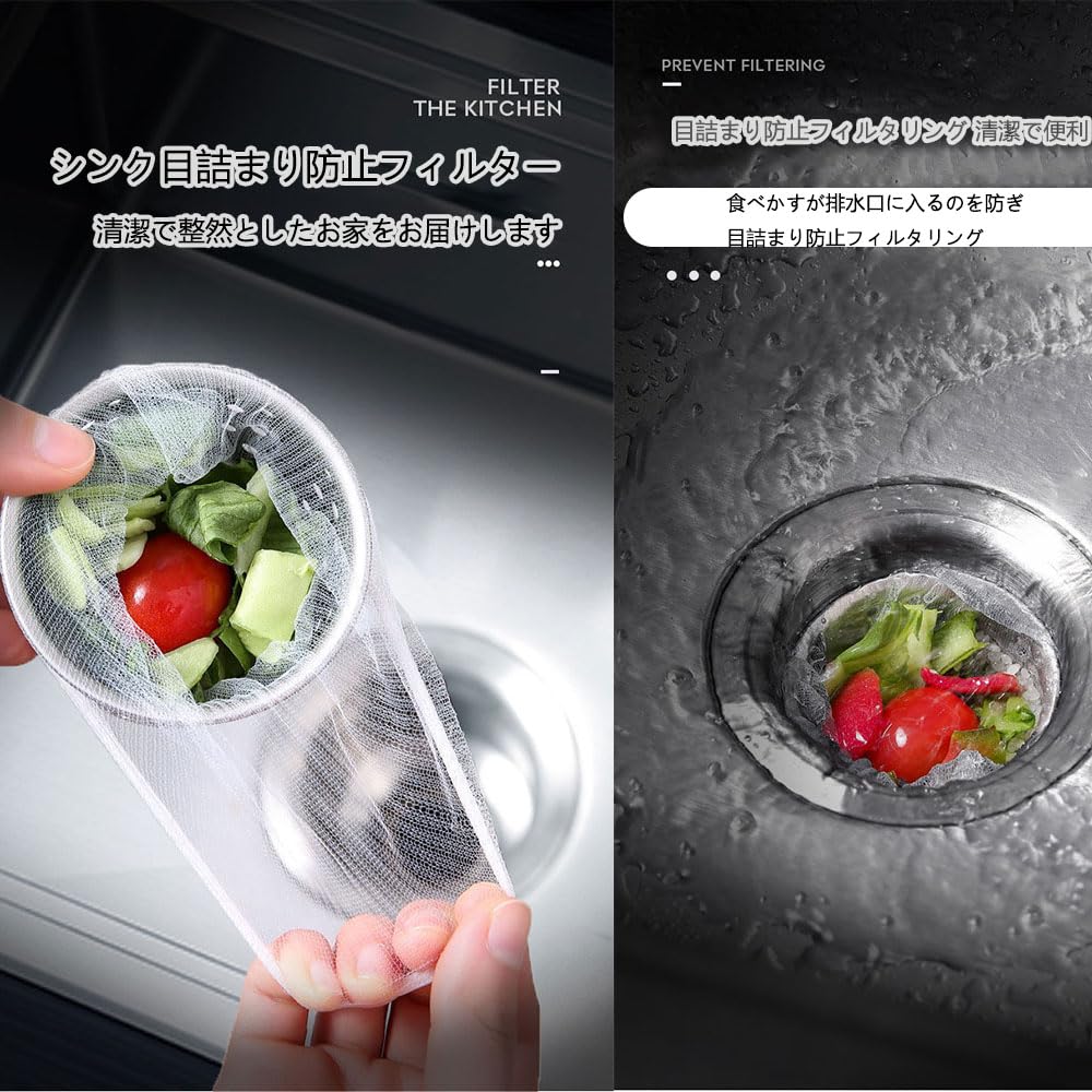 5:【簡単セットで後片付けラクラク!】取り付けが簡単、使い終わったらネットごと捨てるだけ!シンクや三角コーナーの掃除の手間を減らし、後片付けが驚くほどラクになります。水切りがしっかりできるので、ゴミ袋の中の水分も減り、処理がスムーズに。忙しい毎日の家事負担を軽減し、キッチンをいつでも清潔に保ちま。