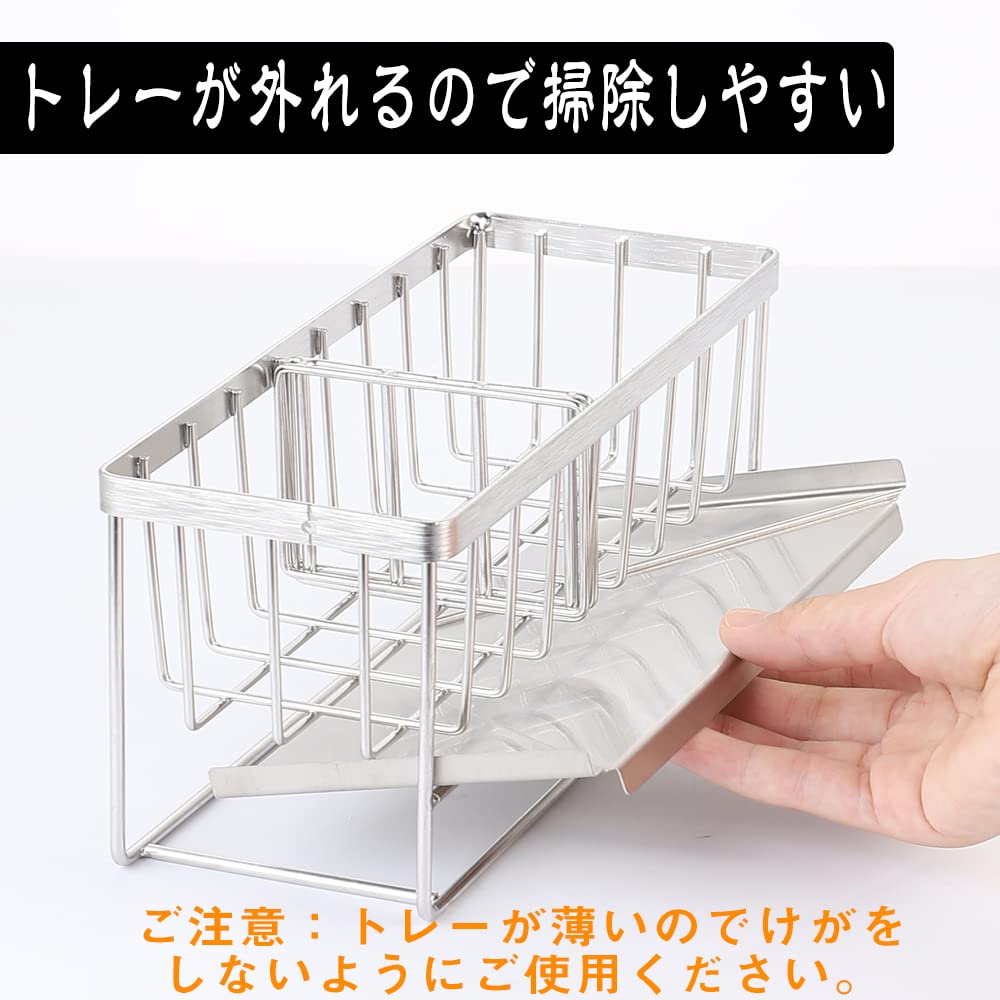 スポンジホルダー スポンジ置き たわし入れ 水が流れるスポンジラック Kiranic 可動式仕切り2枚付き ステンレス製 錆び防止 ボトルホルダー 洗剤置き たわしホルダー スポンジ収納 水まわり用品 説明書付き