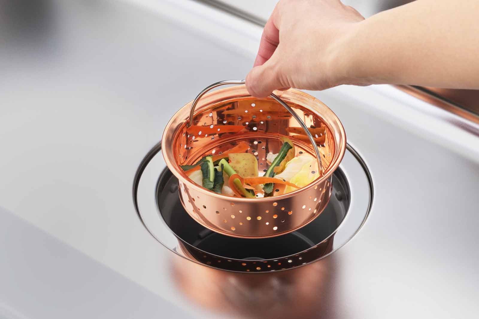 銅イオン効果で臭いやぬめりがつきにくい銅製ゴミ受け