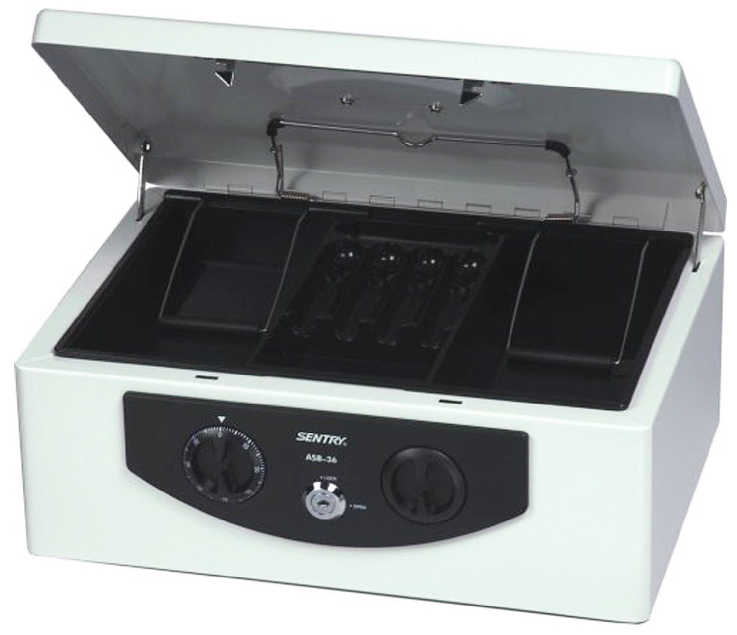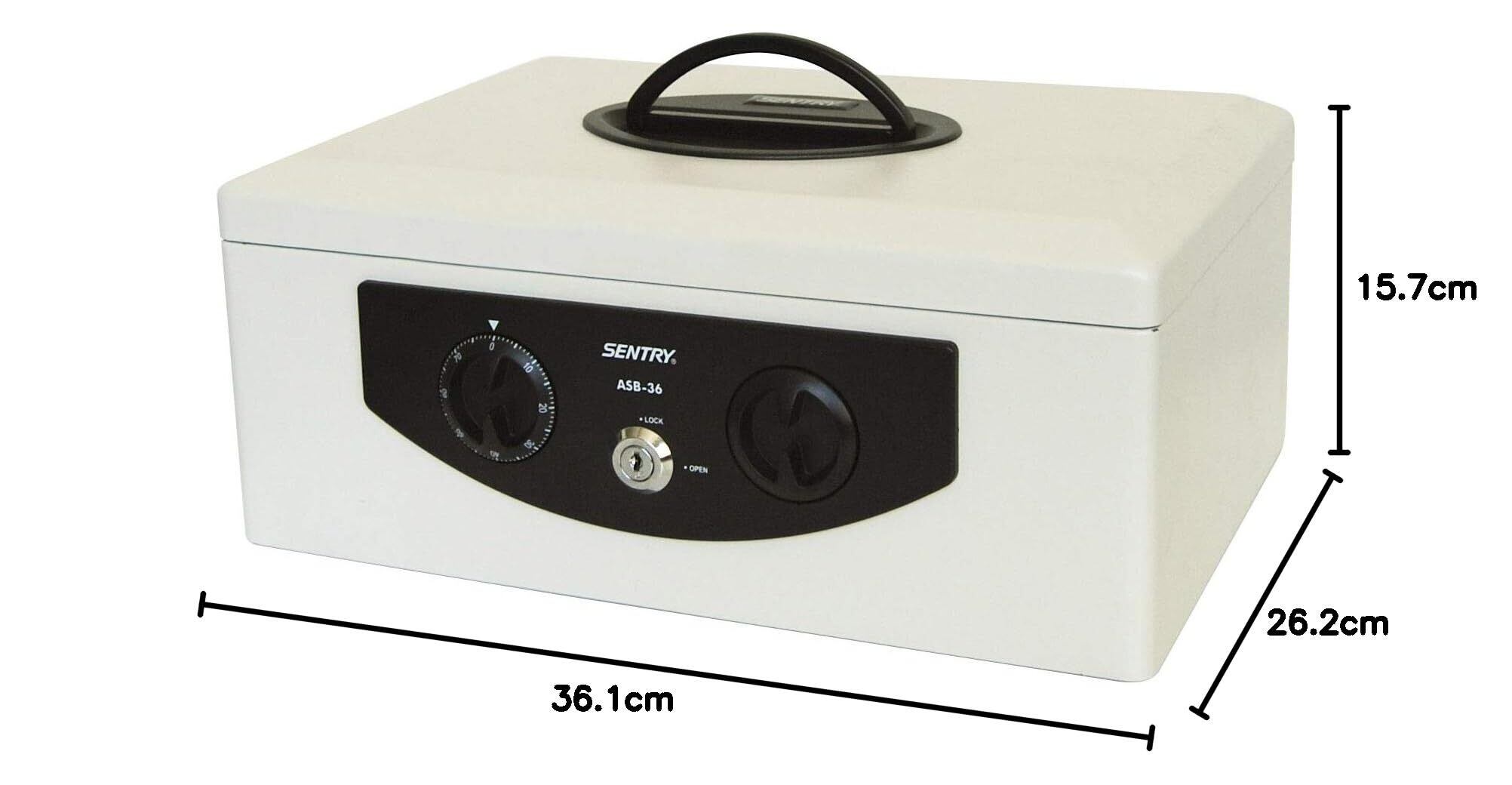 SENTRY (セントリー) 金庫 手提げ金庫 小型 キャッシュボックス 収納ボックス 鍵付き A4 ダイヤル+キーロック コインケース ワンタッチオープン ライトグレー ASB-36