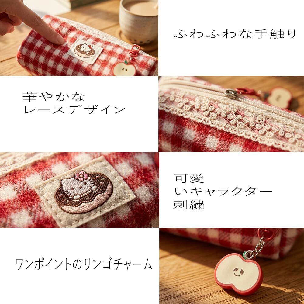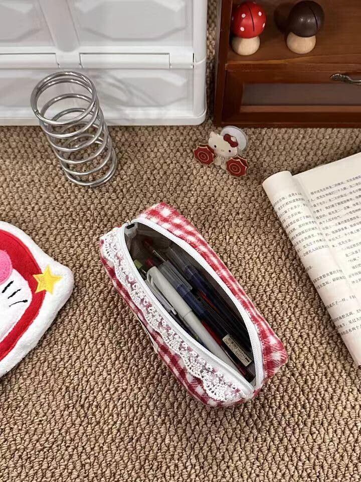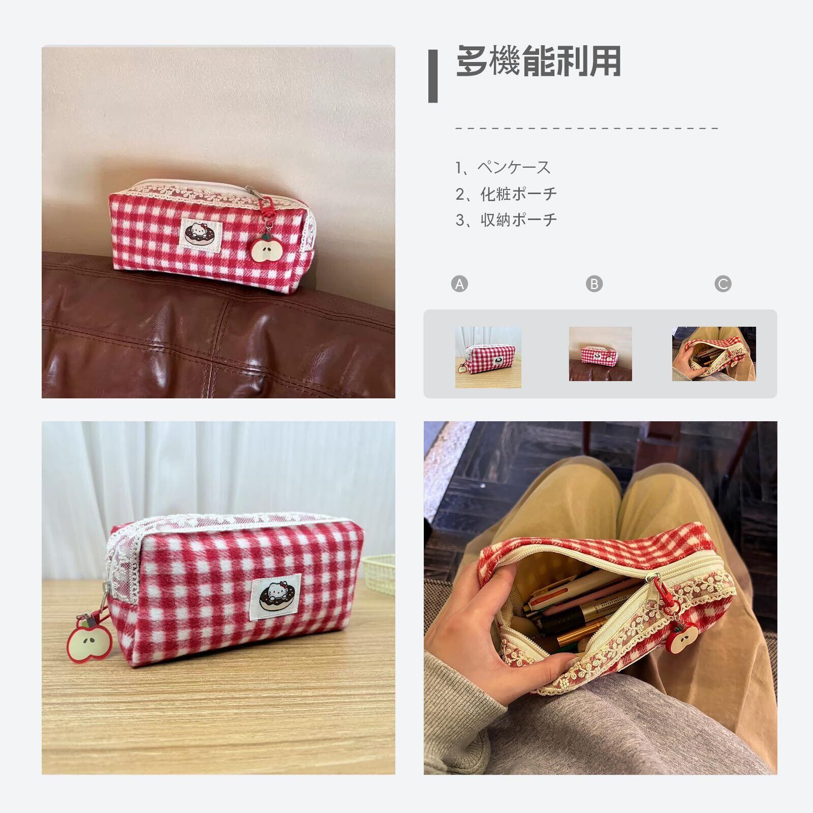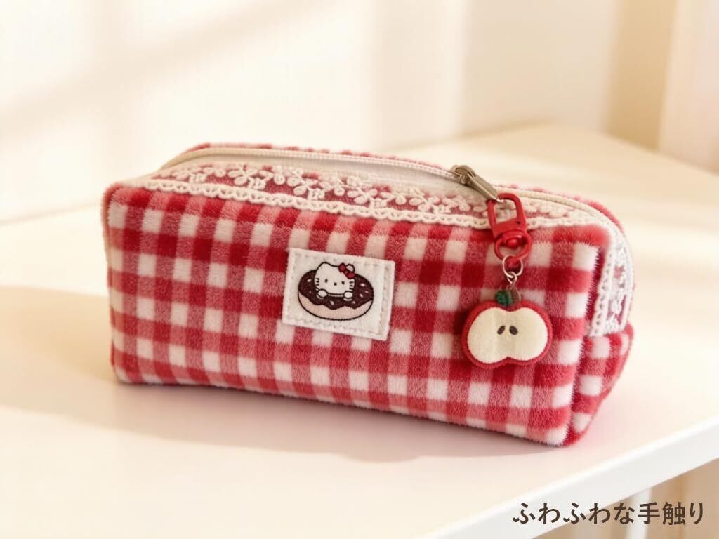 赤チェック メイクポーチ 小物 収納 携帯用 かわいい デザイン性 文具ポーチ (赤チェック筆袋(掛け付き))