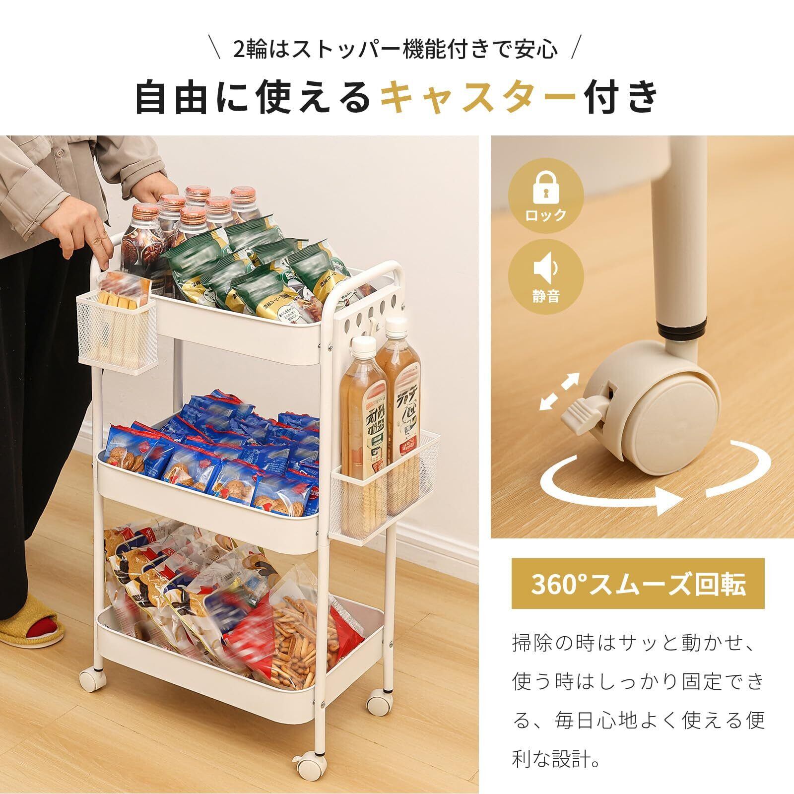 GOENDR キッチンワゴン キャスター付き 3段 スチール製 スリム 収納ラック 耐荷重15kg 奥行29cm 小物隙間収納 ペットボトルラック バスケットラック 調味料棚 キッチン 冷蔵庫横 ホワイト