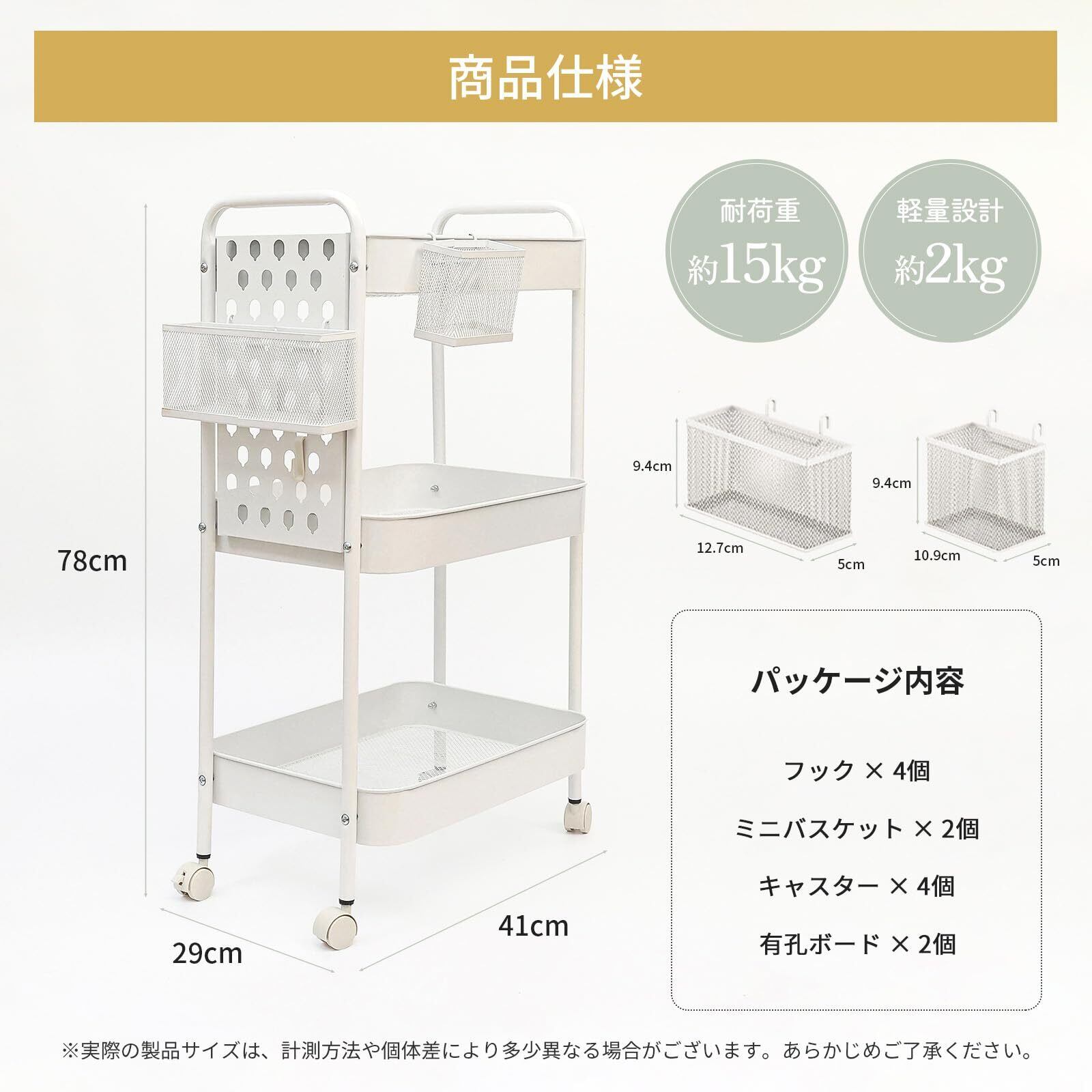 【軽量&簡単組立】本体重量約2kgで女性でも楽々持ち運び、工具不要の簡単組立設計。 忙しい日常でもすぐに使い始められる手軽さと、長期間の耐久性を両立した収納ワゴン。