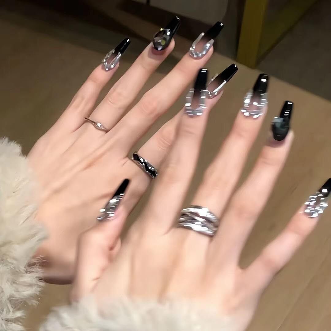 【流行ネイルシート】不思議な黒調、人気のネイルチップ。簡単アート!可愛いデザインが豊富なネイルデカール。今話題の量産型服や地雷系服に搭載できるネイルチップです。