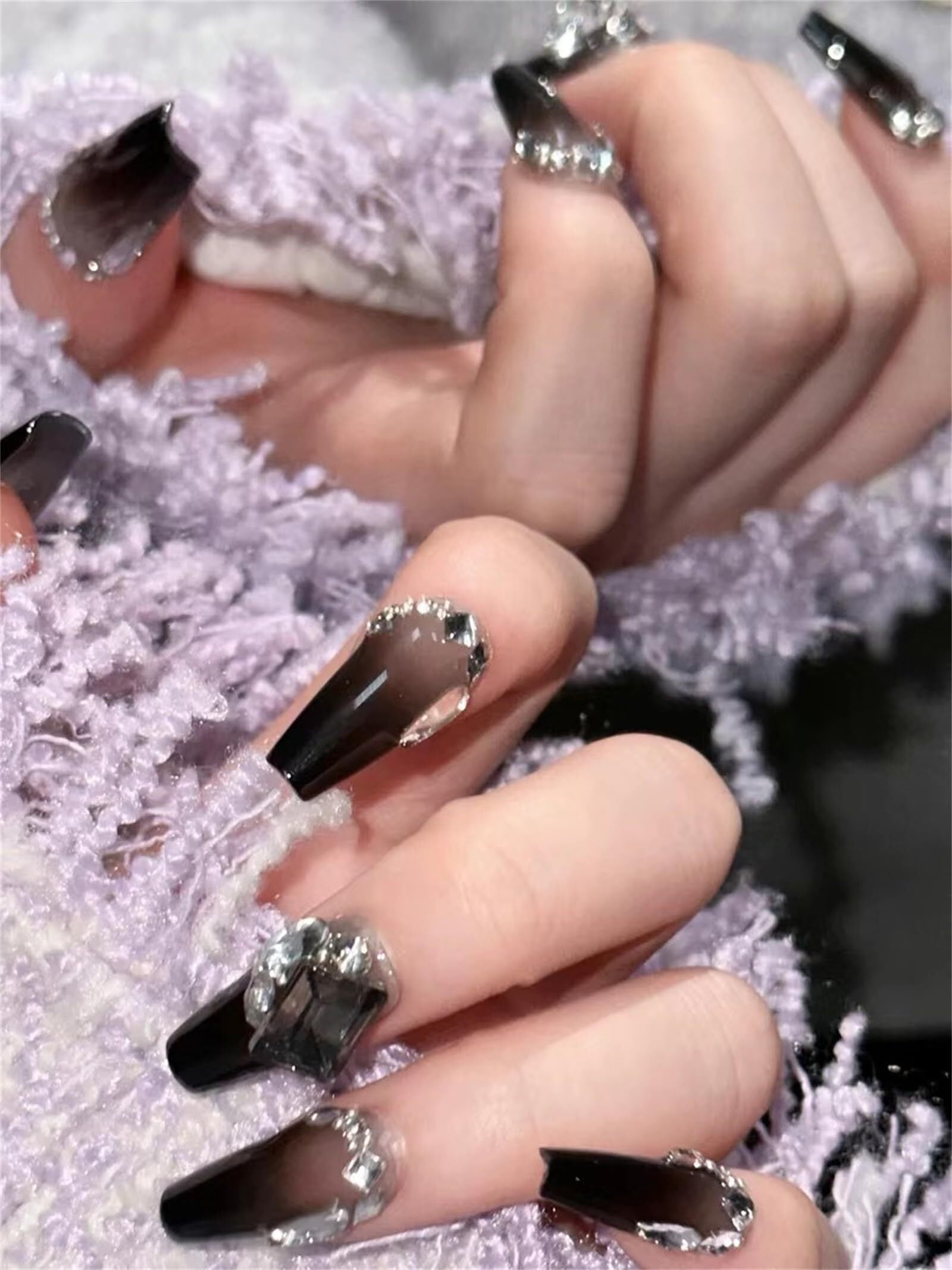 ネイルチップ 3D爪 つけ爪 黒 24枚入 可愛いチップ ジェルネイル ネイルシール リボン つけ爪 ネイル ビーズ 地雷系 韓国 量産型 コスプレ人気 ネイル用品簡単に貼る 耐久 便利 コスプレ nail ファクション 両面テープ48枚付き (B)