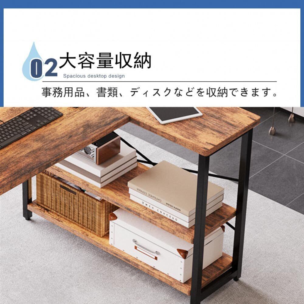 Embrace life パソコンデスク computer desk 机 収納 ゲーミングデスク L字型 リムーバブルラック pcデスク ラック付き コーナーデスク オフィスデスク 在宅勤務 副105cm トラ皮色