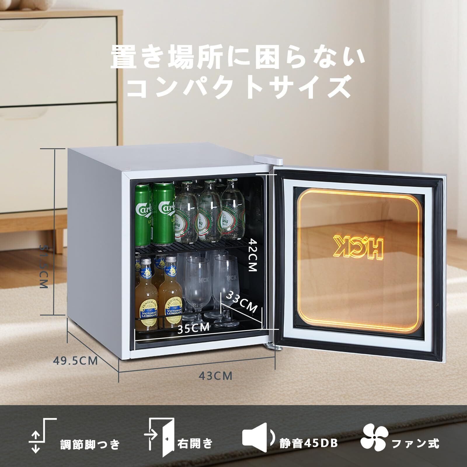 HCK 冷蔵庫 35L -5℃ 新体験 小型 ドリンク用 スムージー作り LEDネオン 透明ガラスドア タッチパネル 冷蔵ショーケース -5℃〜22℃ 大容量 右開き 静音 省エネ 保冷保温庫 バー 寝室 オフィス カフェ レストラン プレゼント SC-46ZZ-S
