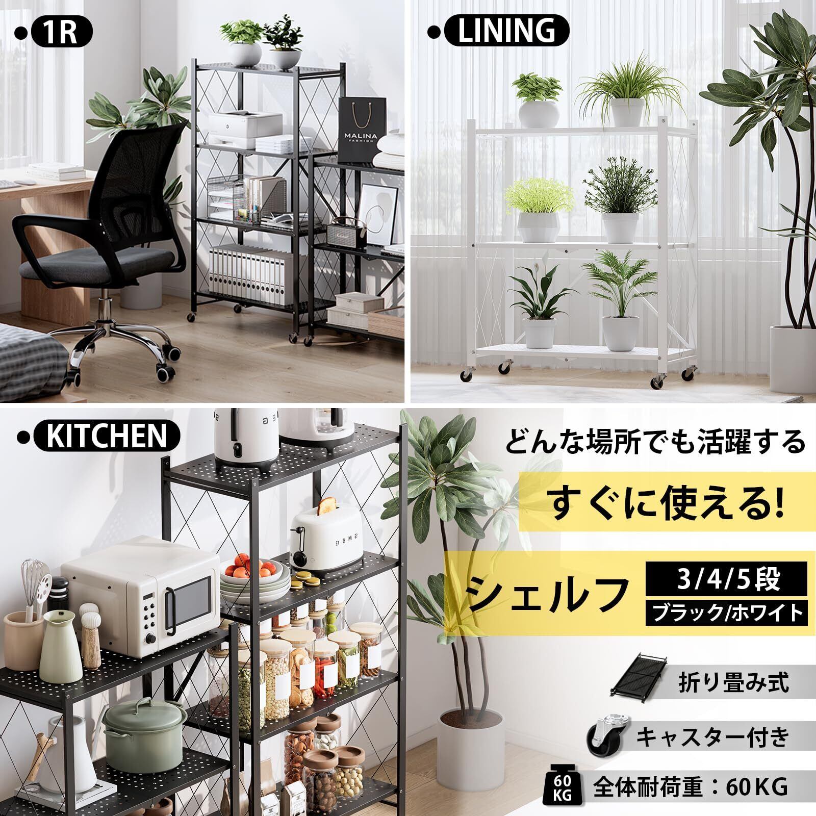 【耐久性と安定感】高品質の素材を使用し、すべての部品に防錆加工を施しているため、耐摩耗性と耐油性に優れ、長期間にわたり美観と機能性を保持します。各棚は最大30KGまでの重さを支えることができ、食器から重たい家電製品、書類や衣類収納ボックスまで、幅広いアイテムの安全な収納が可能です。