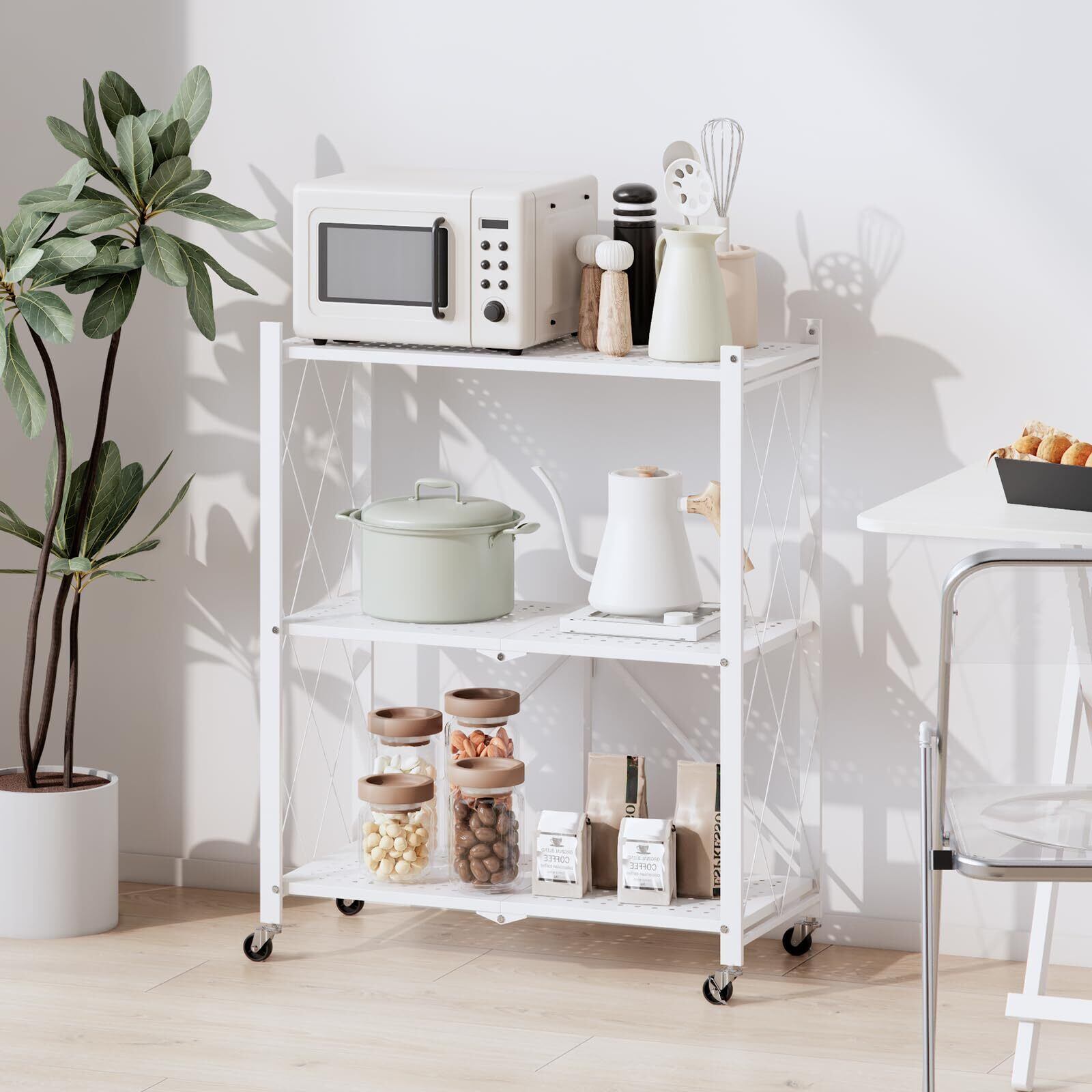 スチールラック メタルラック 幅70 ホワイト 3段 完成品 棚 キャスター付き 折り畳み キッチン 収納 レンジ コンパクト