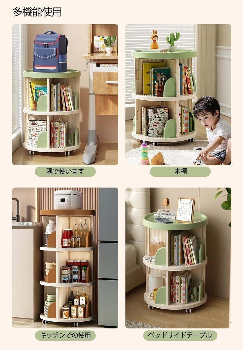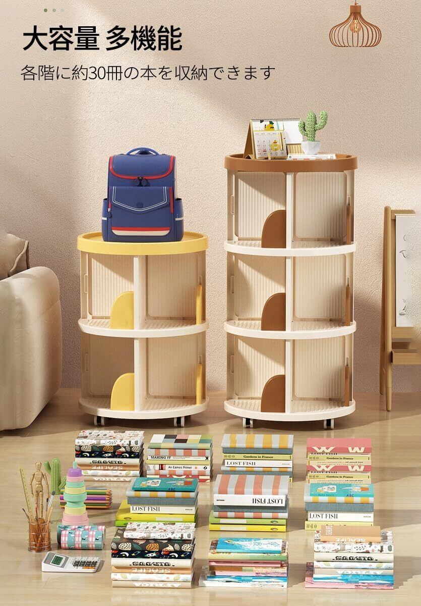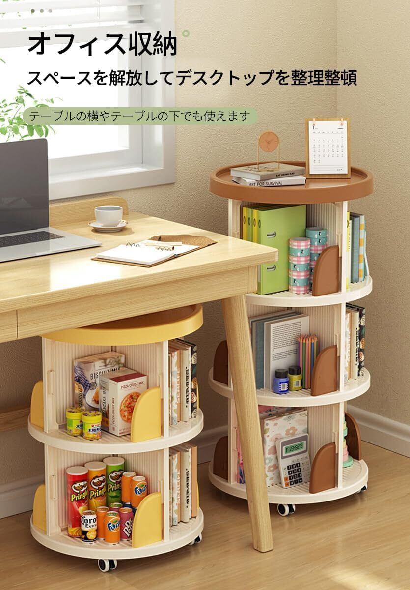 【回転可能 移動可能】本棚の底面にはキャスターが付いており、回転や移動がとてもスムーズです。本棚の高さは約26cmであり、ほとんどのサイズの書籍を収納することが可能です。移動や回転が容易なため、部屋の隅など狭いスペースや机の下に簡単に設置できます。床を傷つけることなく手軽にそして静かに動かすことができます。