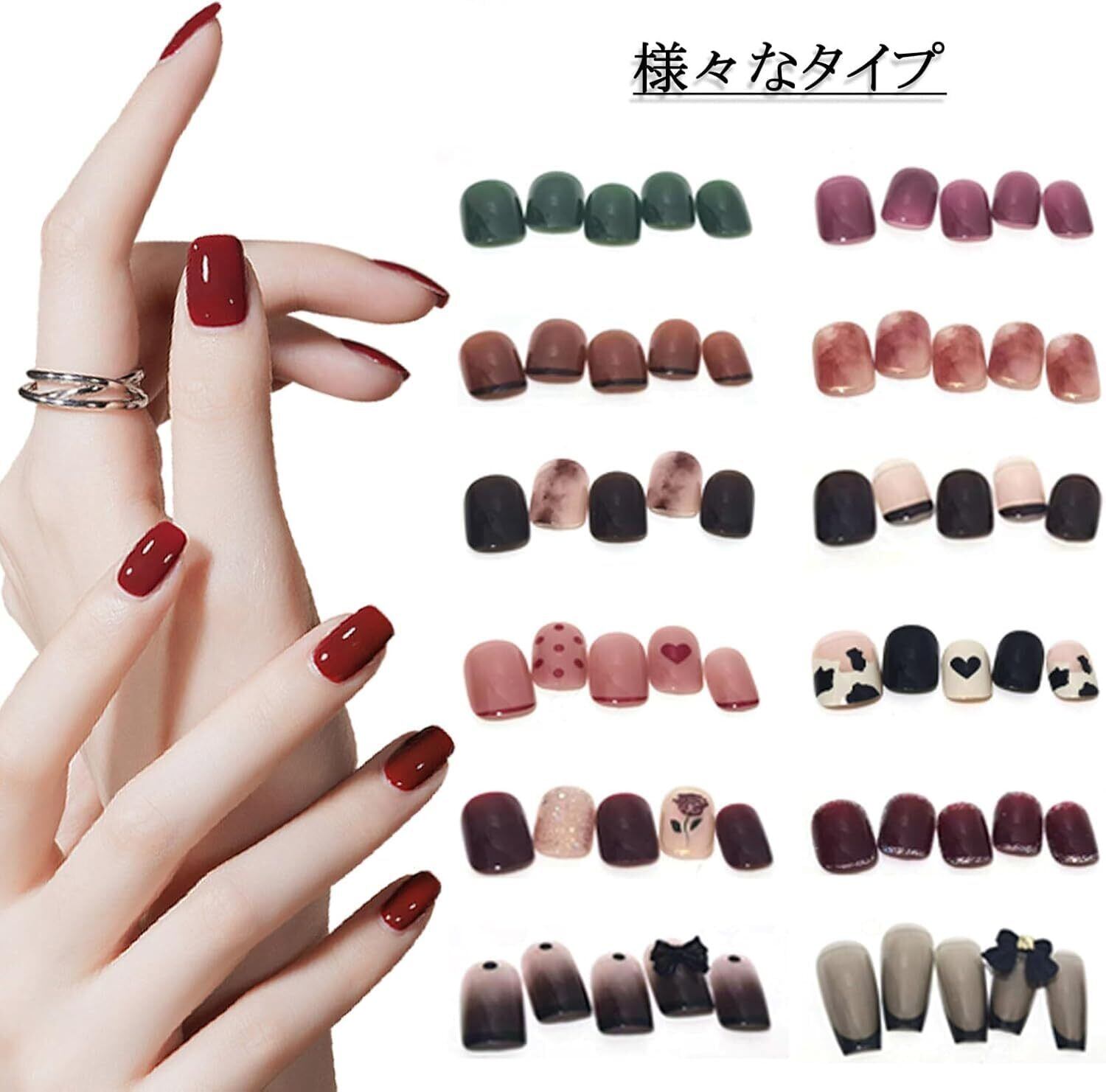 【DIYネイルチェンジ】このネイルチップを持って数分間だけでネイルチェンジできます。3D加工、防水、安全で便利で、爪を傷めないネイルウェイです。頻繁に付け替えてもOKです。