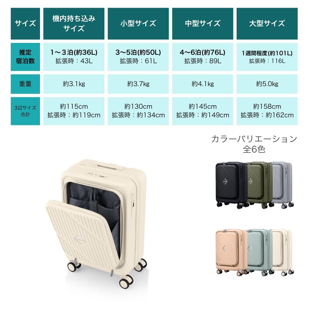 3辺合計 115cm(機内持込みOK) / 拡張時 119cm(機内持込み不可)